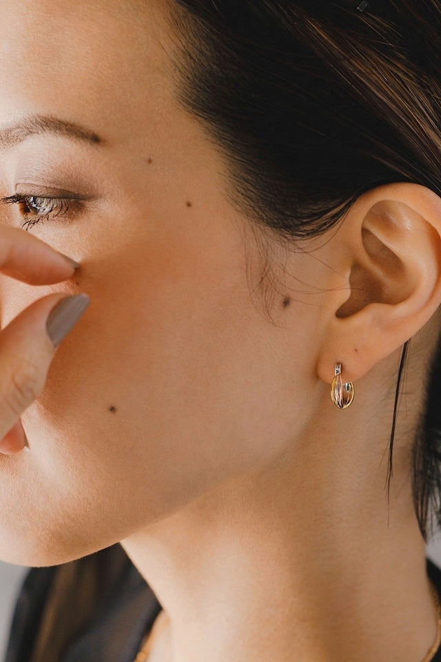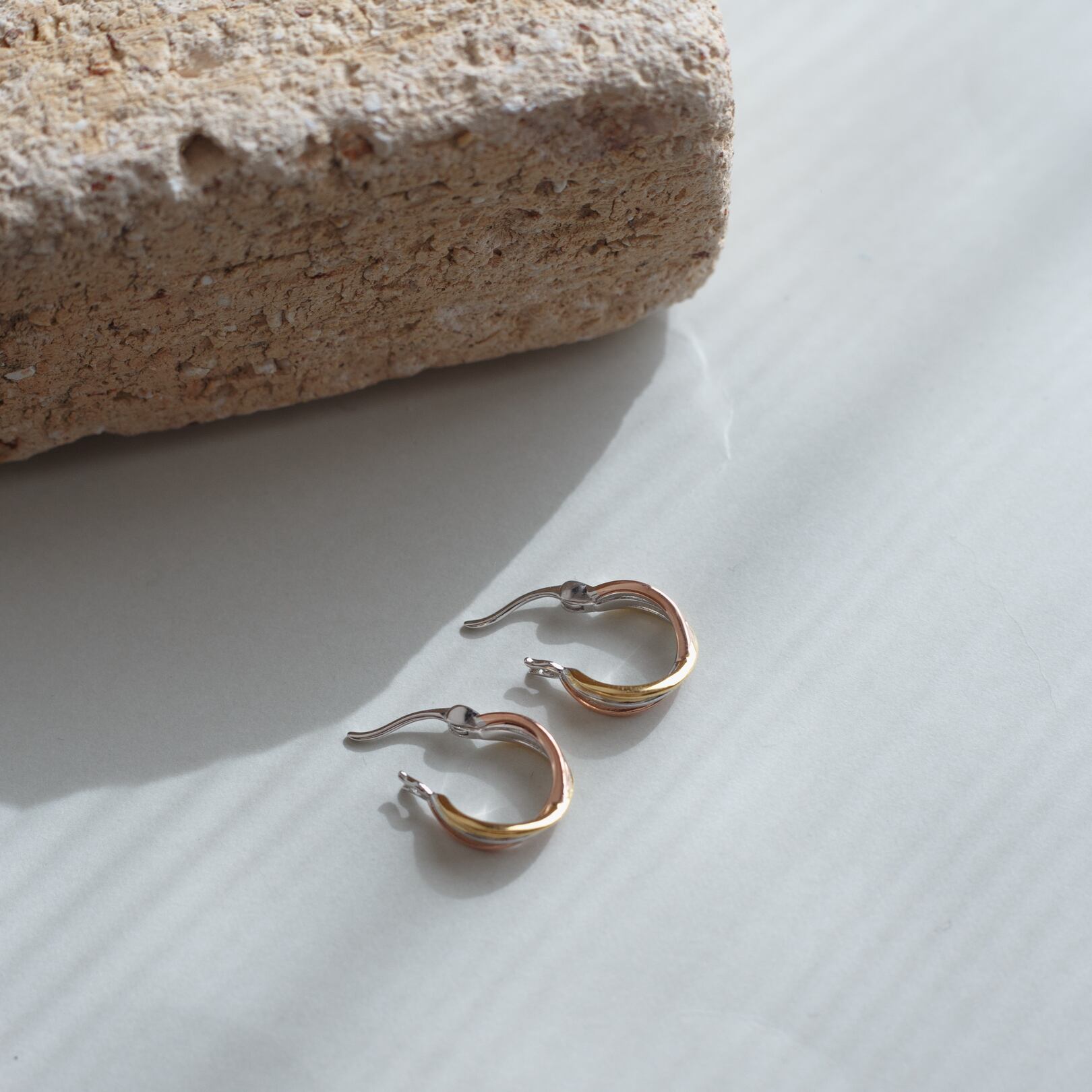 シルバーとゴールド、オレンジゴールドの3色をミックスしたデザインがとてもお洒落なピアスです!