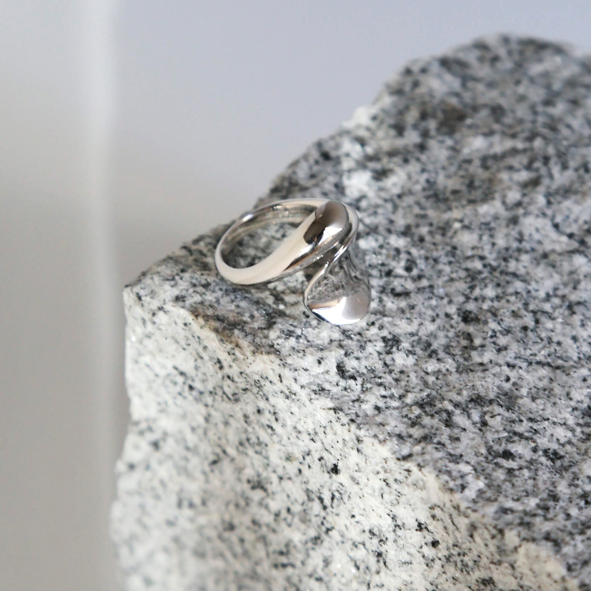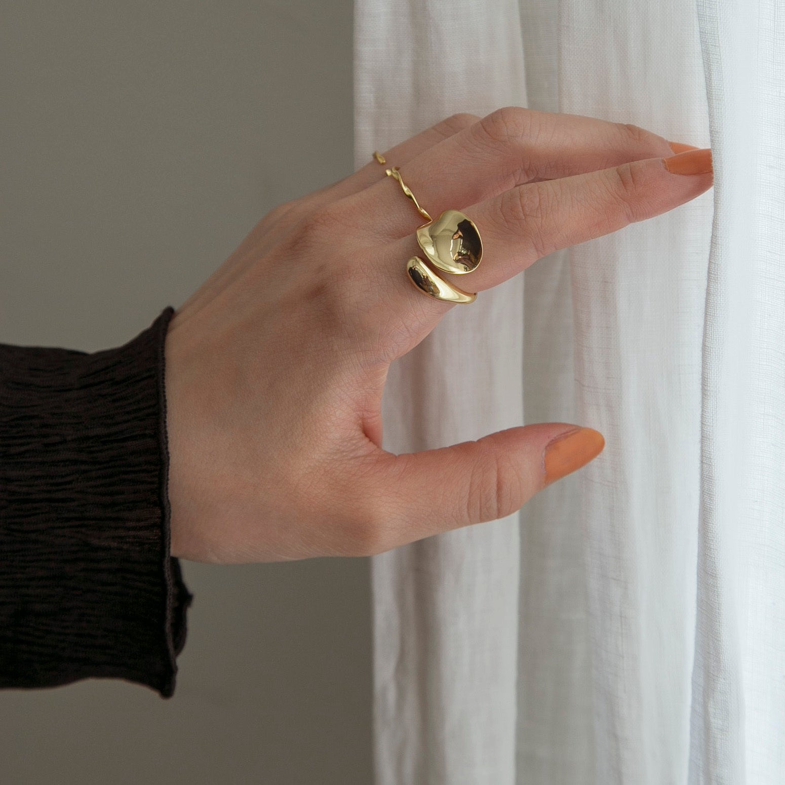 個性的に見えてシンプルなので飽きがこず、他のリングと合わせるとこなれ感が出ます◎