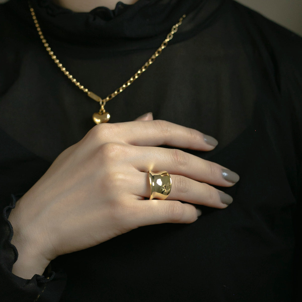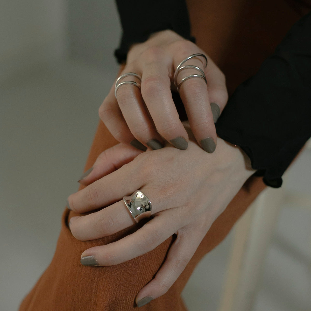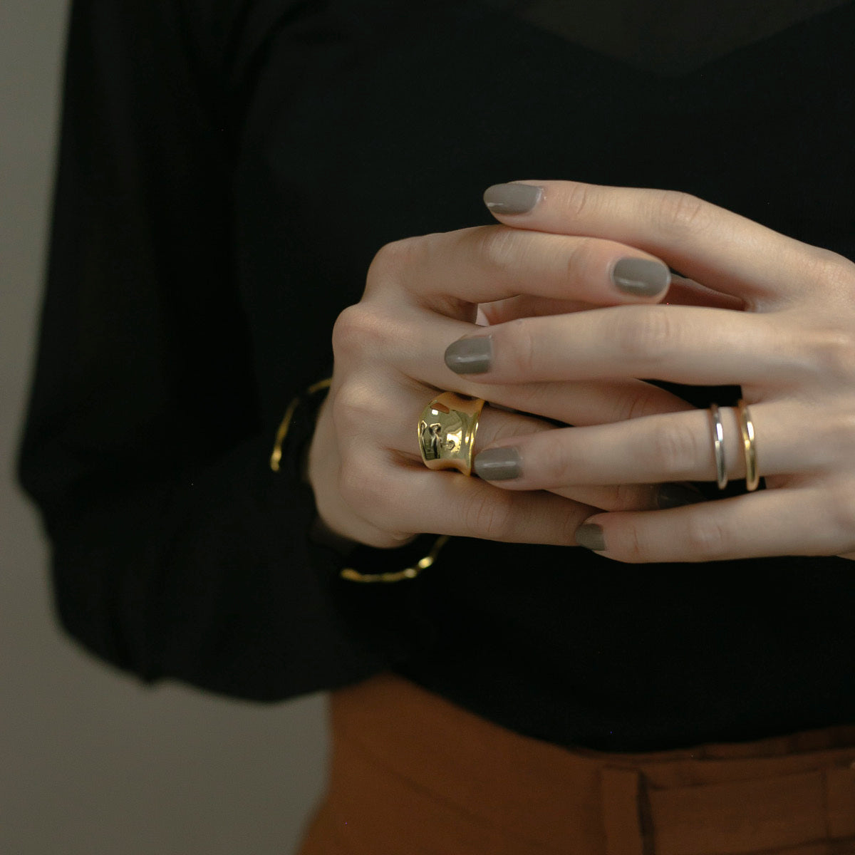 手元のアクセントにぴったりのサイズ感で、カーブががったフォルムとツヤがとても綺麗なリングです!