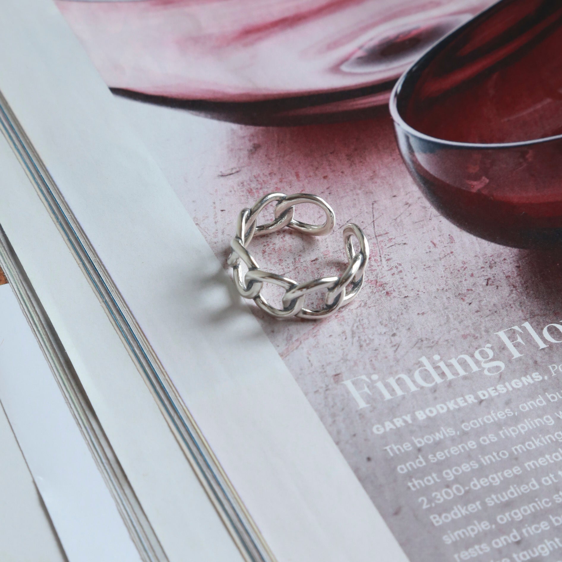 指になじむ丸いチェーンがとても可愛く、クールになり過ぎない絶妙なバランスが人気のリングになります!