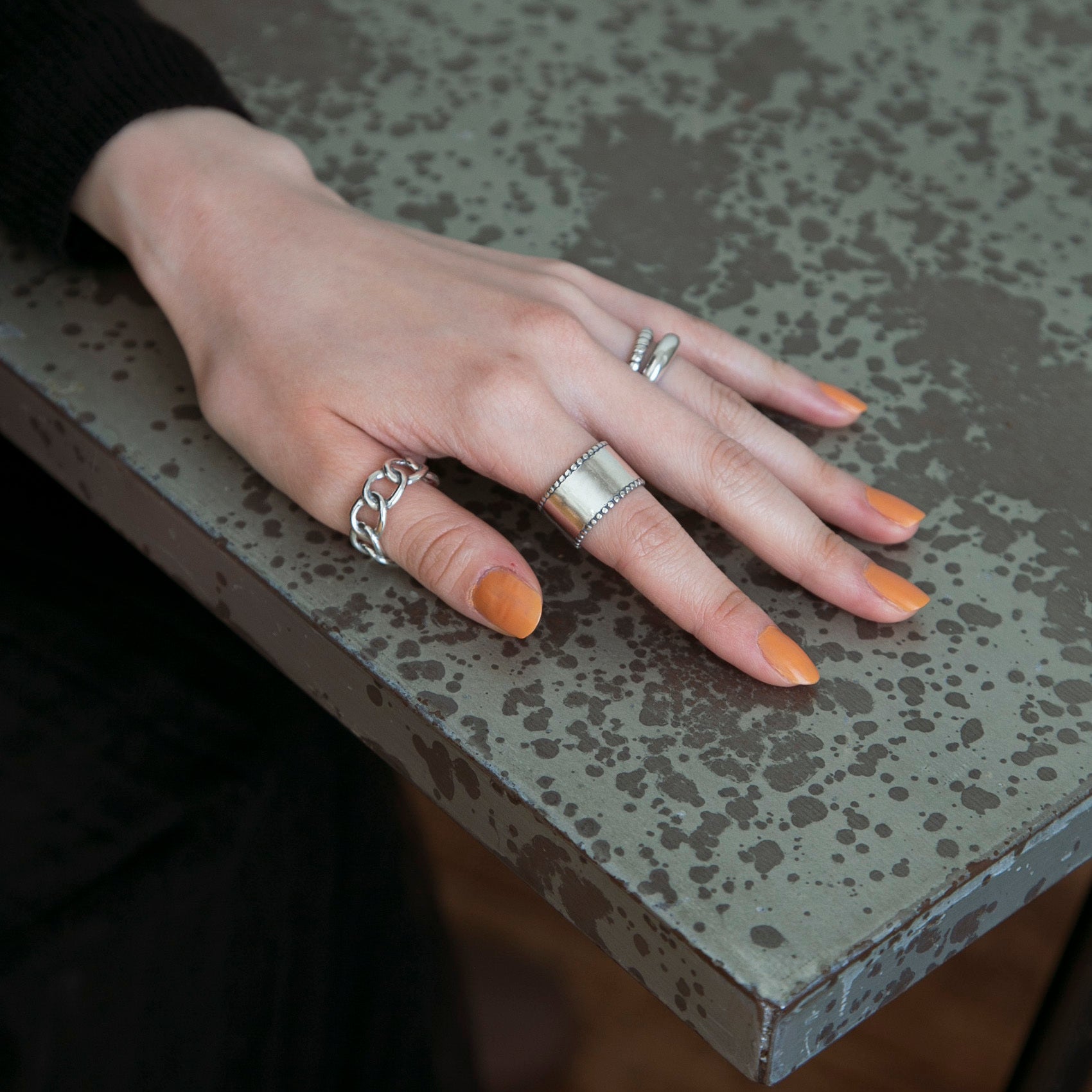 単体ではもちろん同じく抜け感のあるアクセサリーと合わせてもお洒落で、大きめサイズのため親指用やメンズにもおすすめです◎