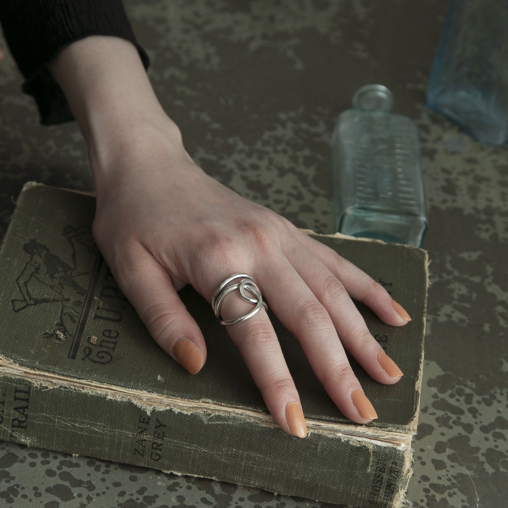 しっかりとした作りでシルバーの重みを感じていただけ、同じように抜け感のあるリングやネイルと合わせるとこなれ感が出ます◎