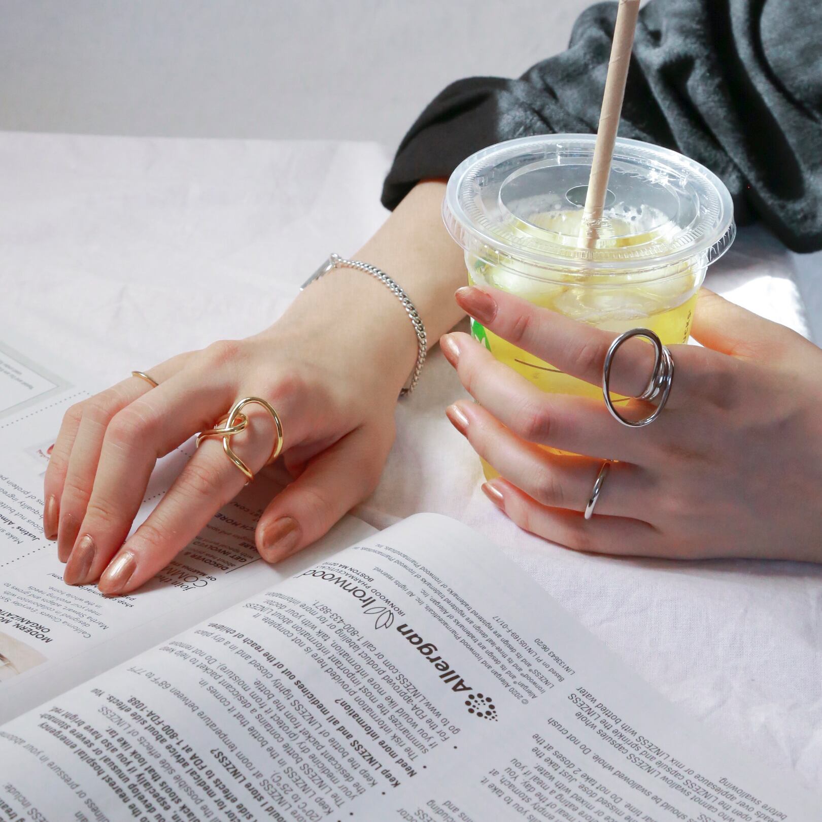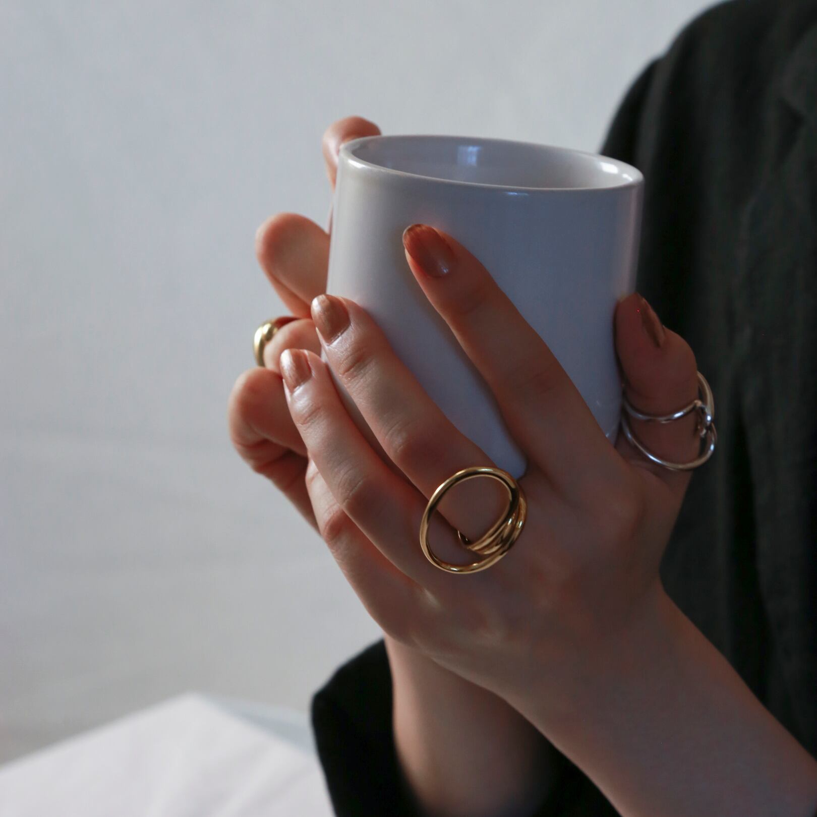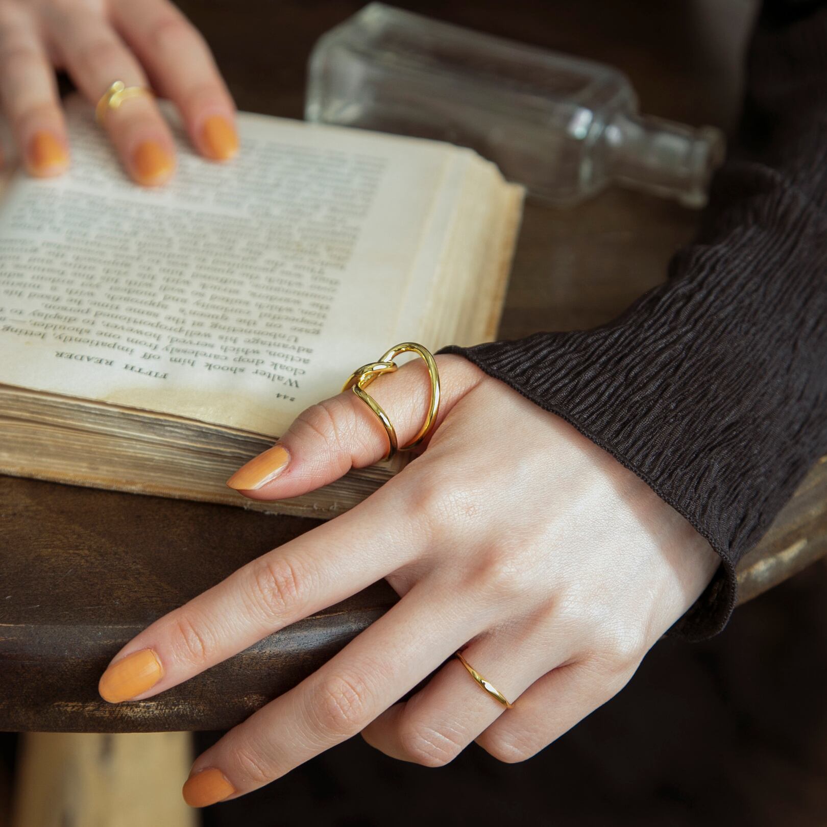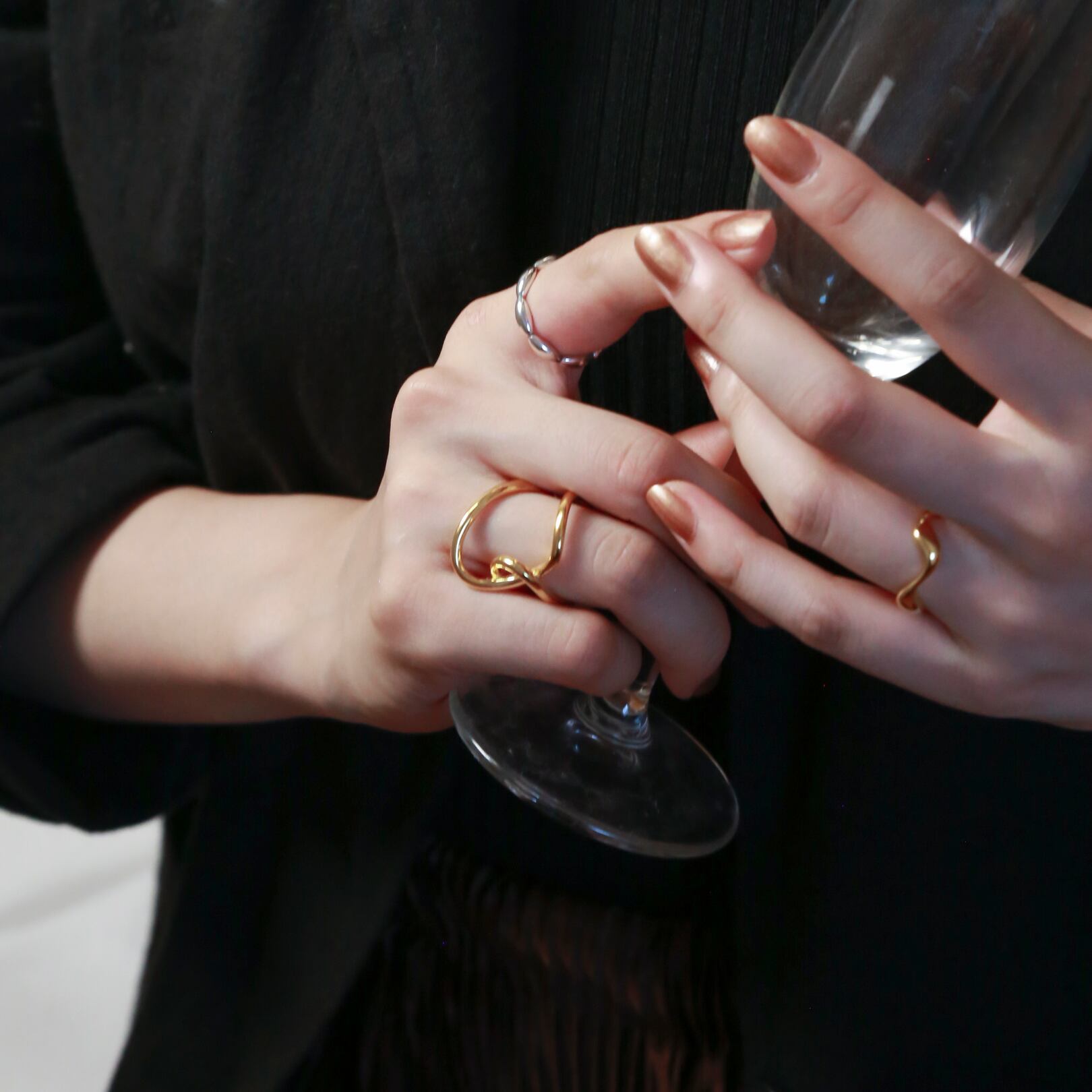 写真のように親指につけても可愛く、しっかりとした作りがこなれ感を演出してくれ、大人カジュアルなファッションに是非◎