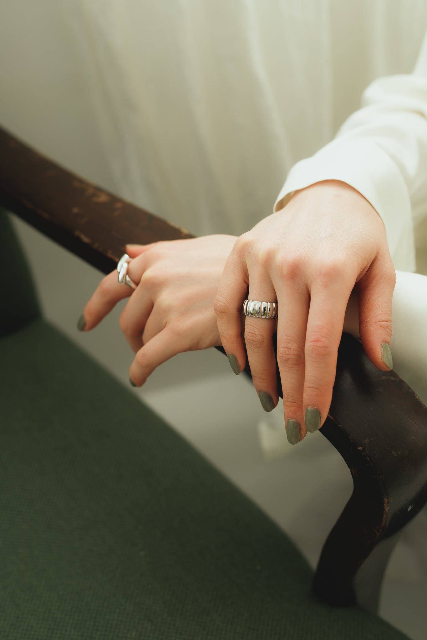 ぷっくりとした縦のラインが手元に存在感を与えてくれるリングです!