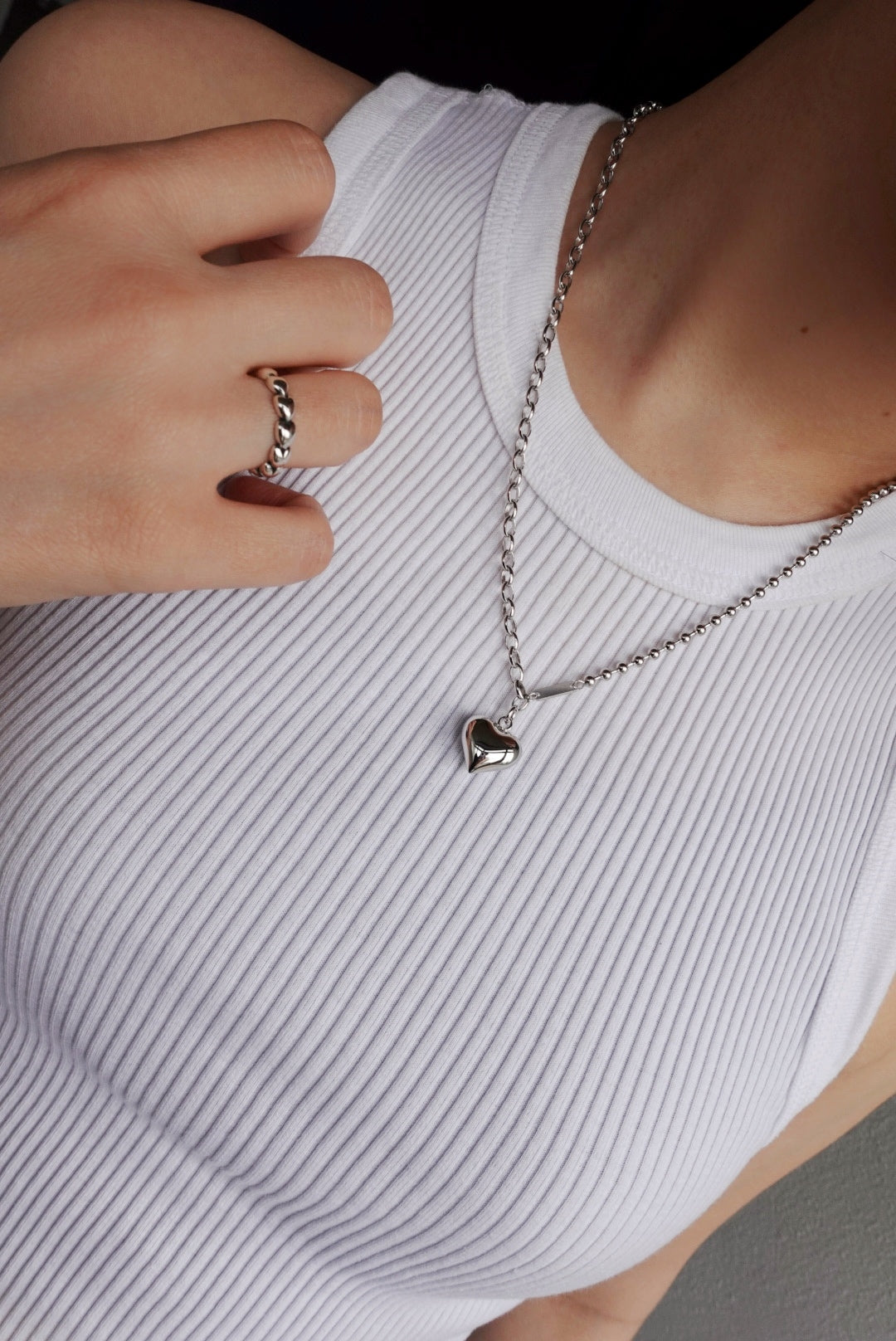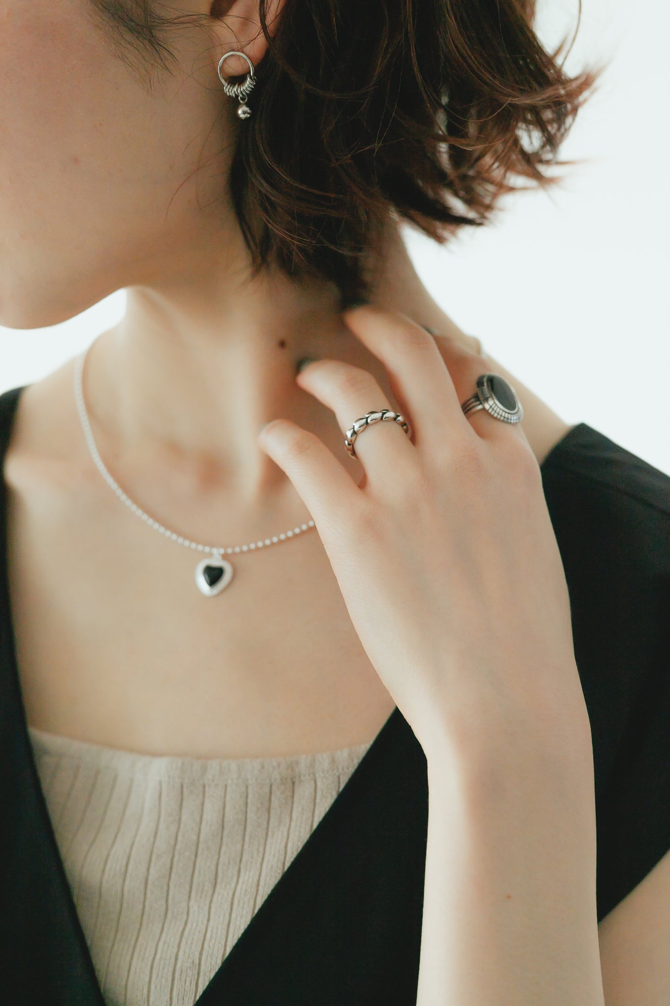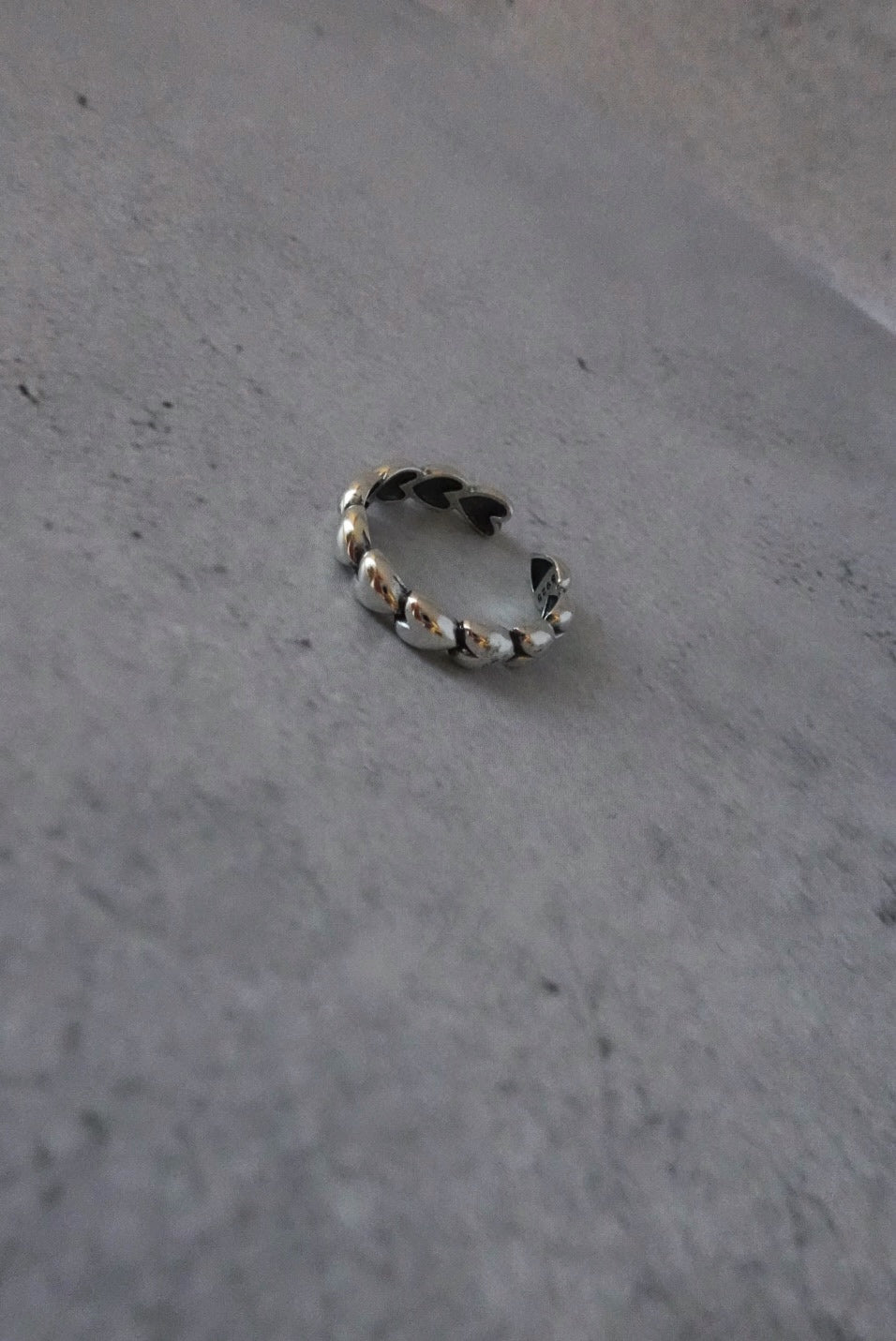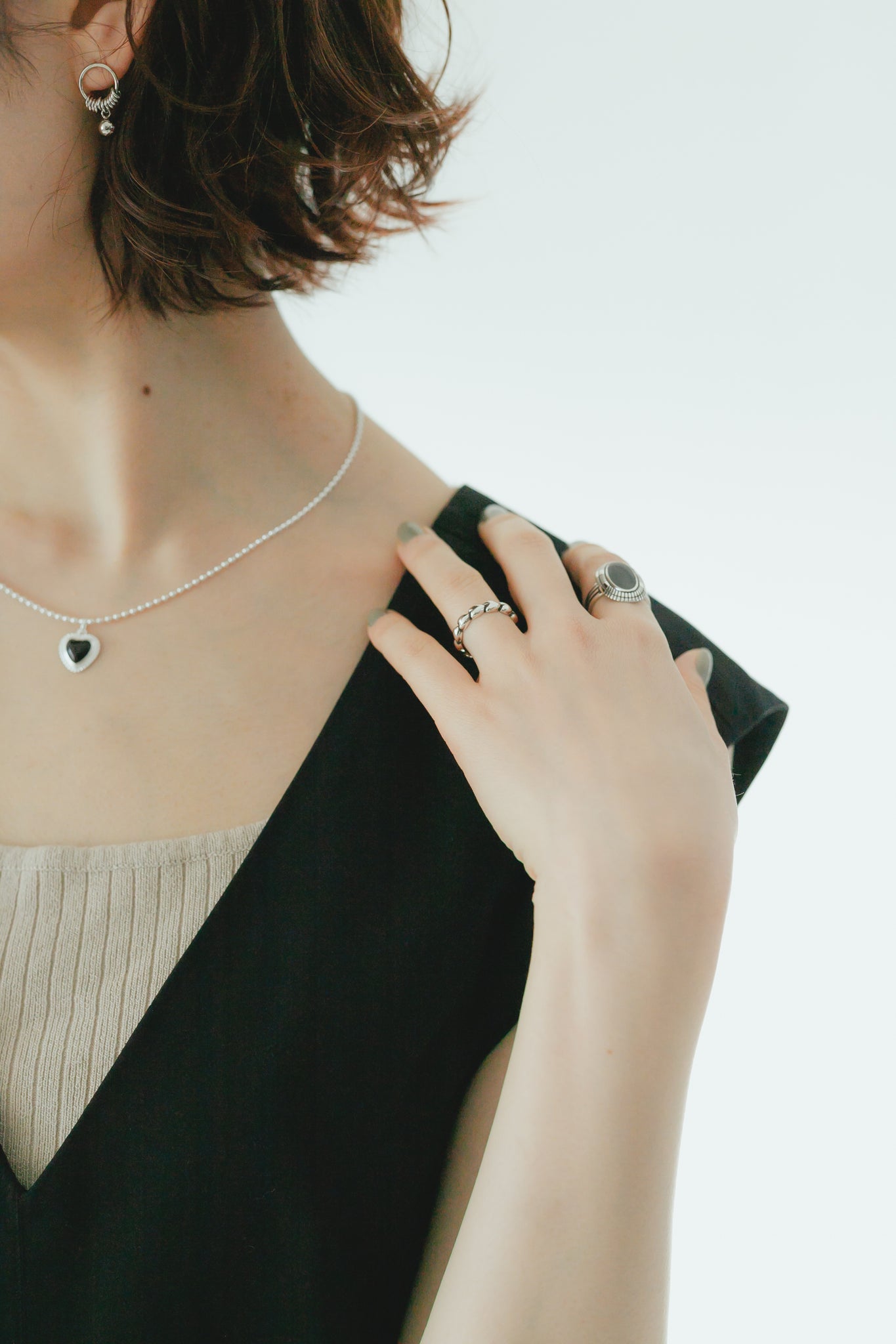 ヴィンテージ加工のぷっくりとしたハートが甘くならずにお使いいただけ、手元に存在感を与えてくれるリングです!