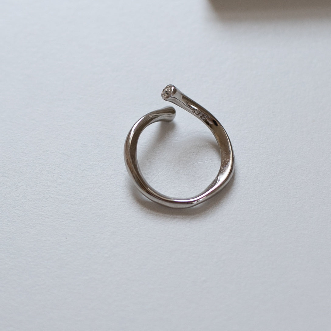 手指をすっきり見せてくれるフォルムに断面のストーンのアクセントがとても可愛いリングになります!