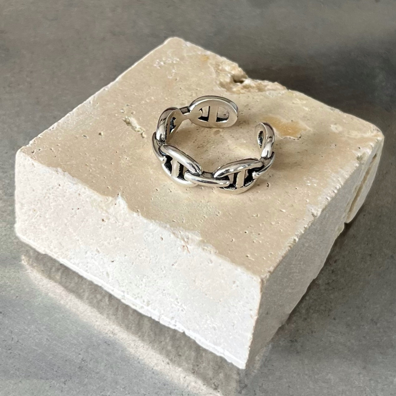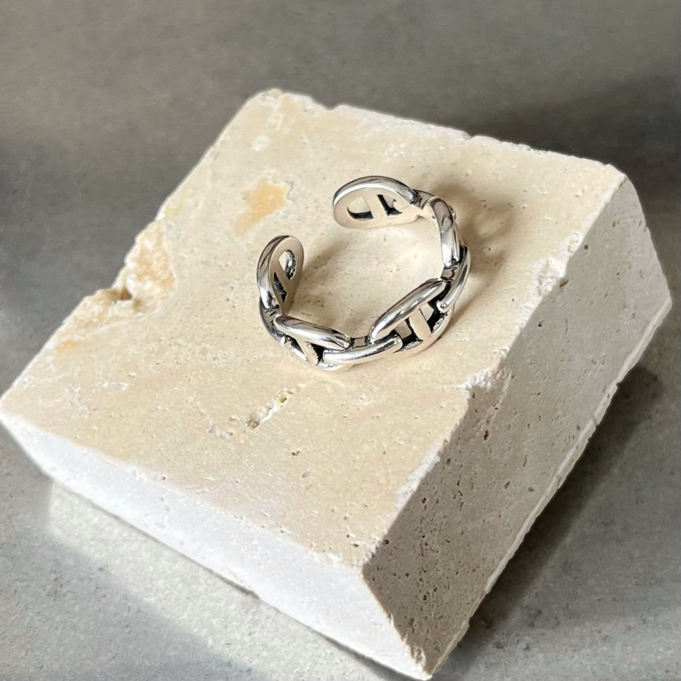 マリンチェーンを模したデザインにヴィンテージ加工がとてもお洒落なリングになります!
