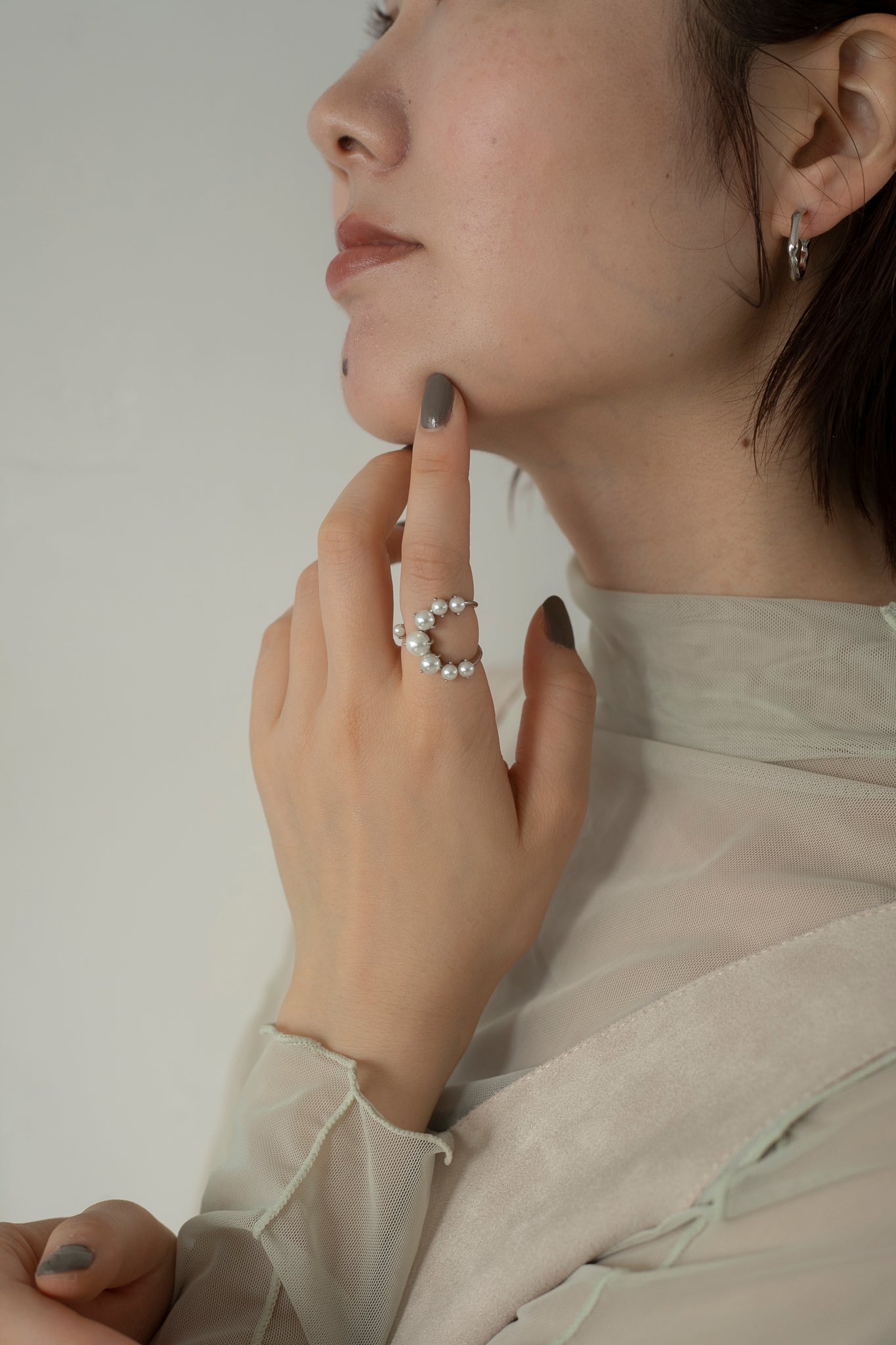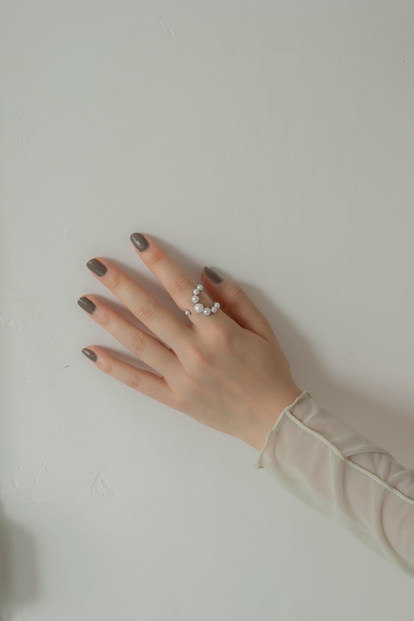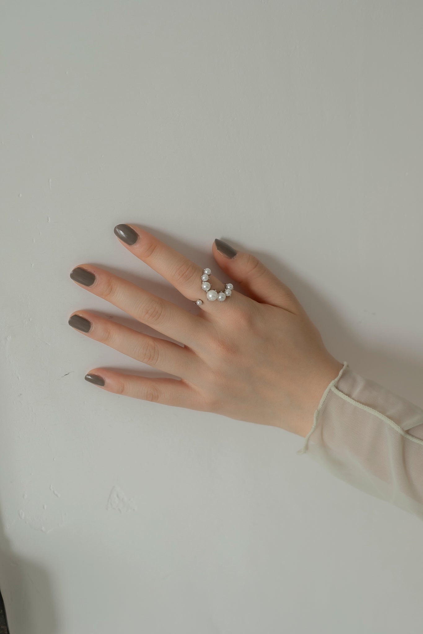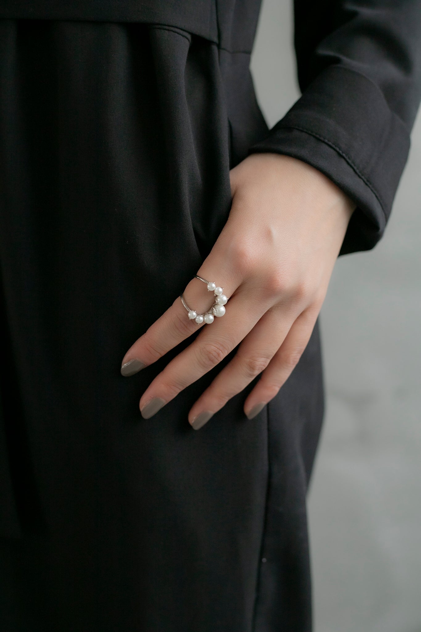 パールの大きさがさりげなくグラデーションになっているので印象が強くなりすぎず、エレガントにもカジュアルにも合わせていただけ、親指につけても可愛いです◎