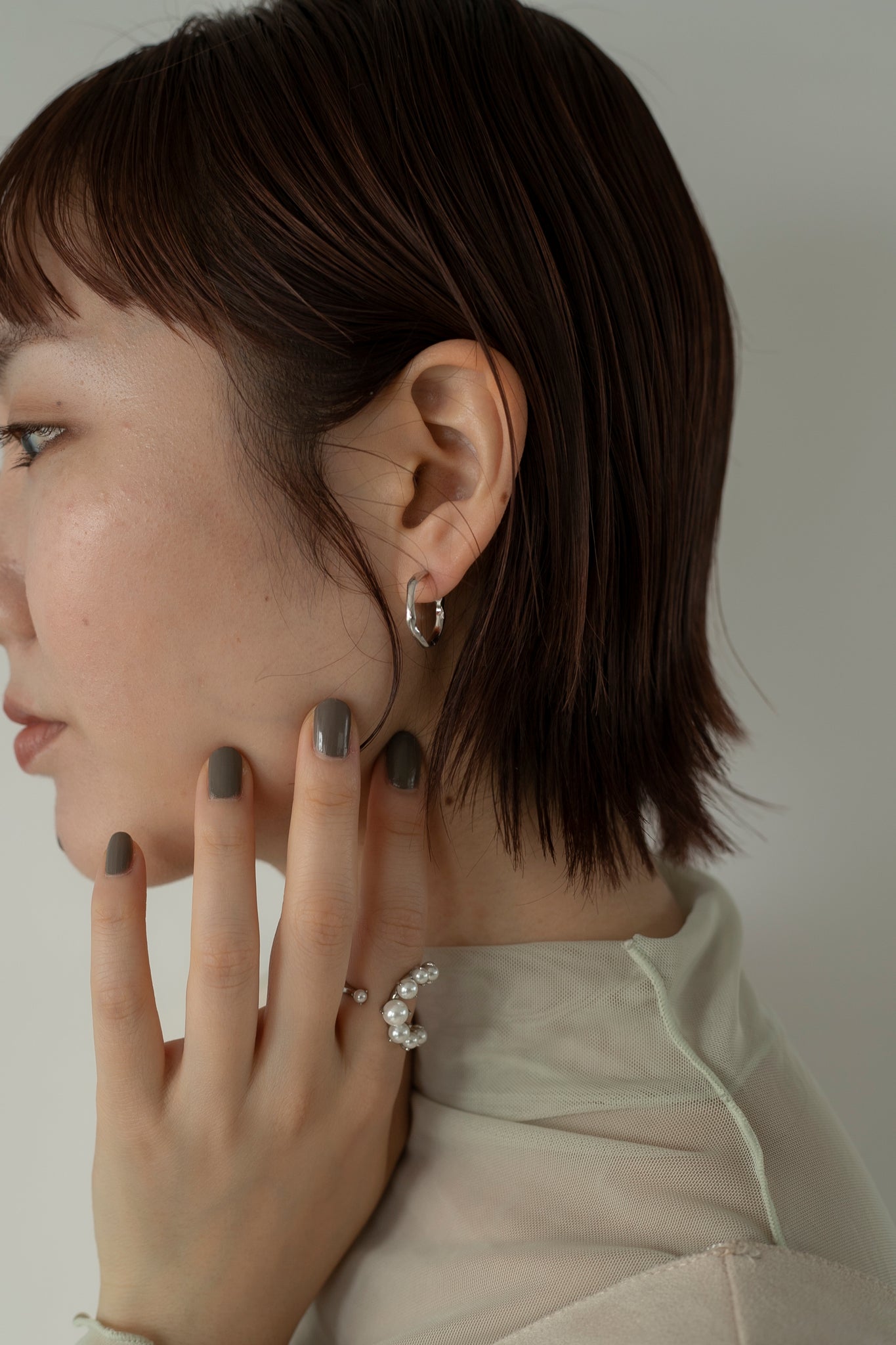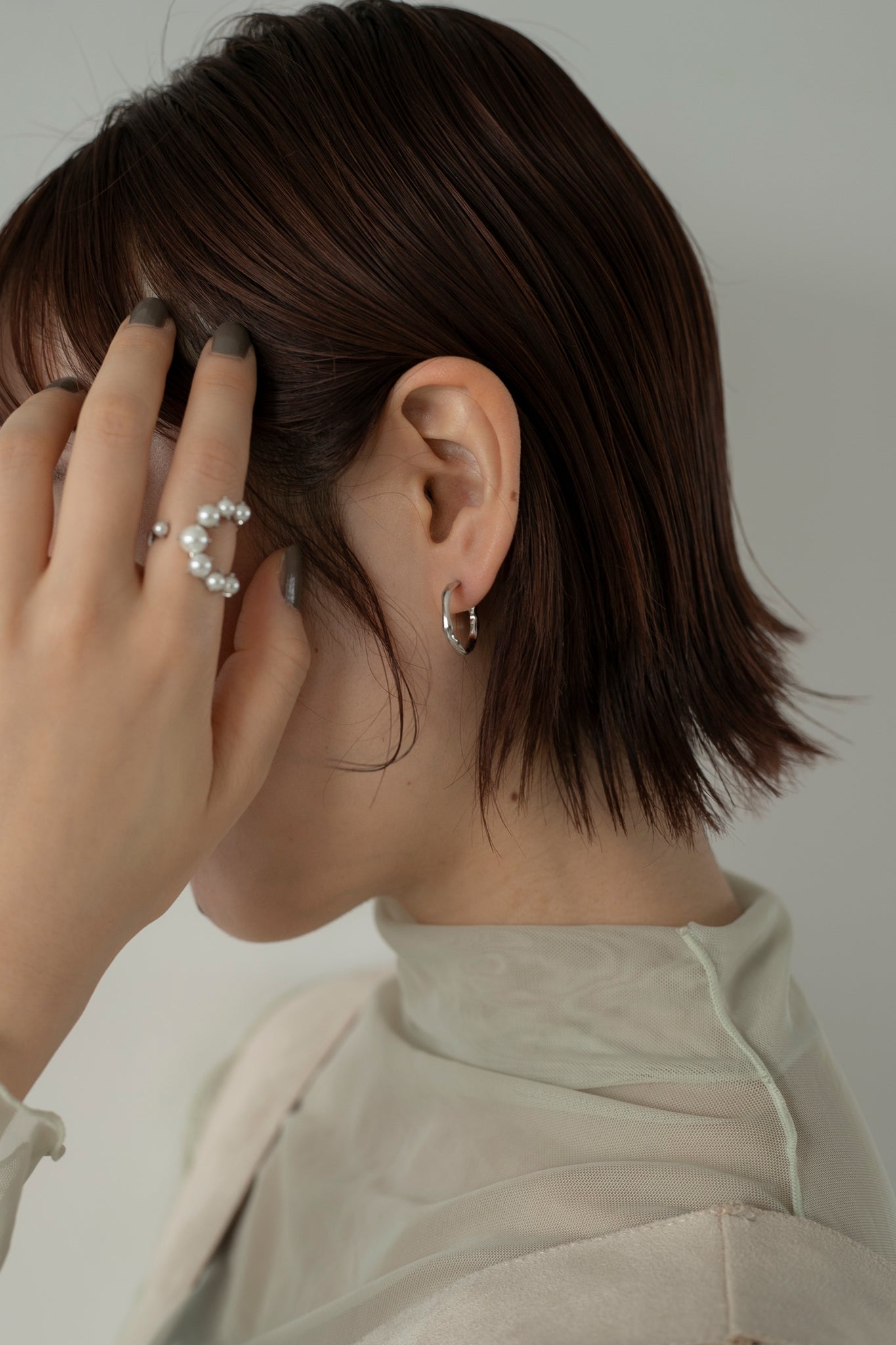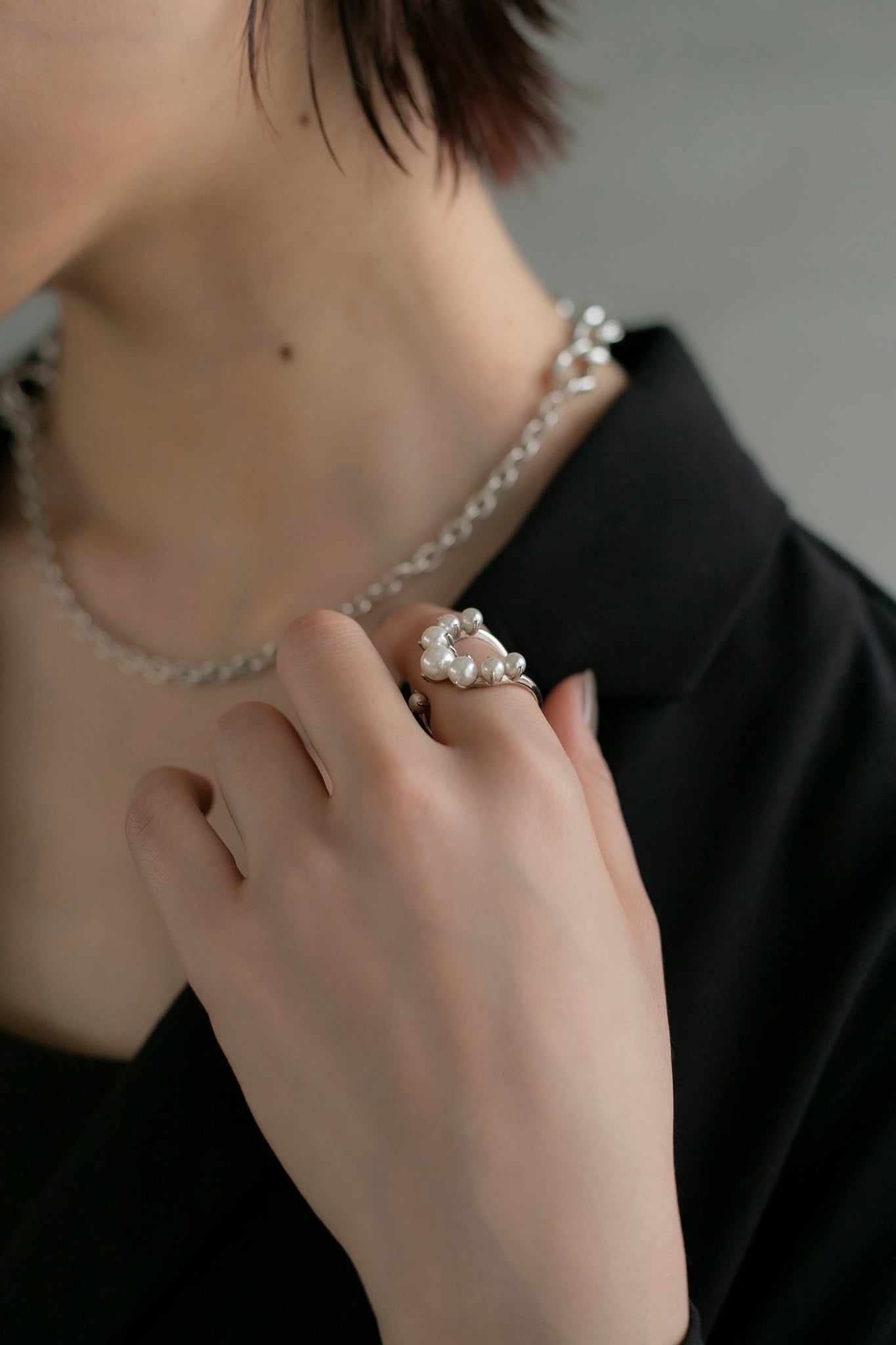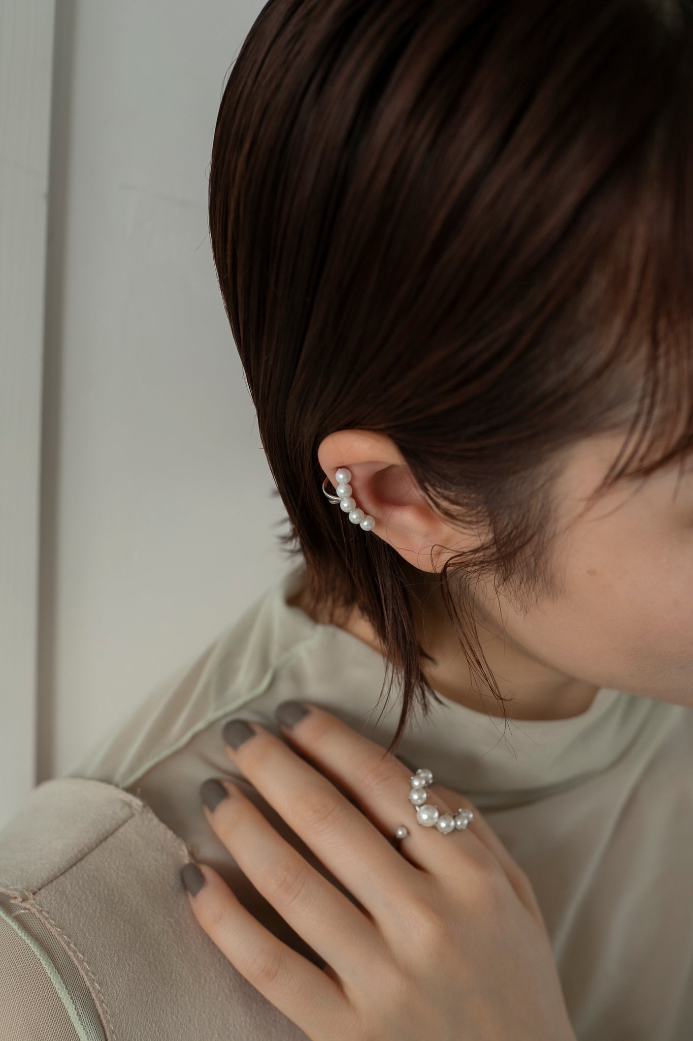 パールの大きさがさりげなくグラデーションになっているので印象が強くなりすぎず、エレガントにもカジュアルにも合わせていただけ、親指につけても可愛いです◎