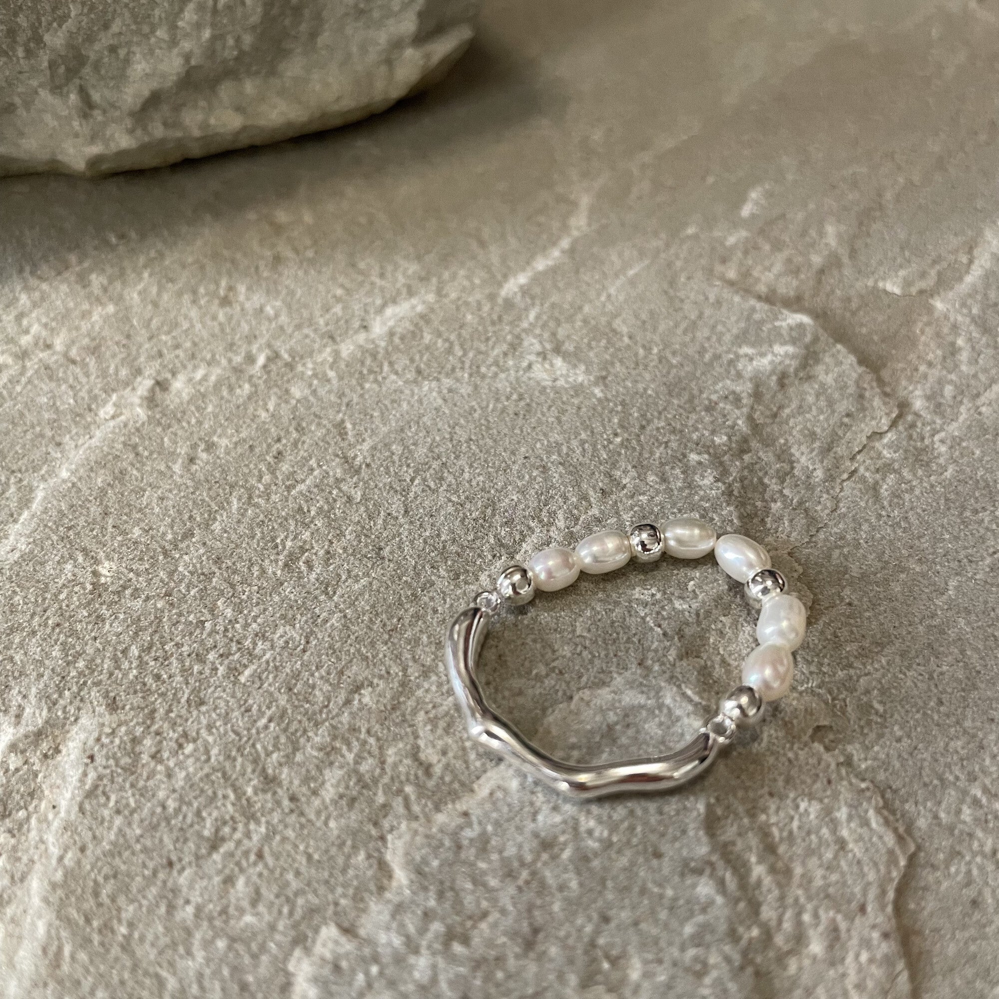 どの部分を正面に持ってくるかで違った表情が楽しめるパールリングです!