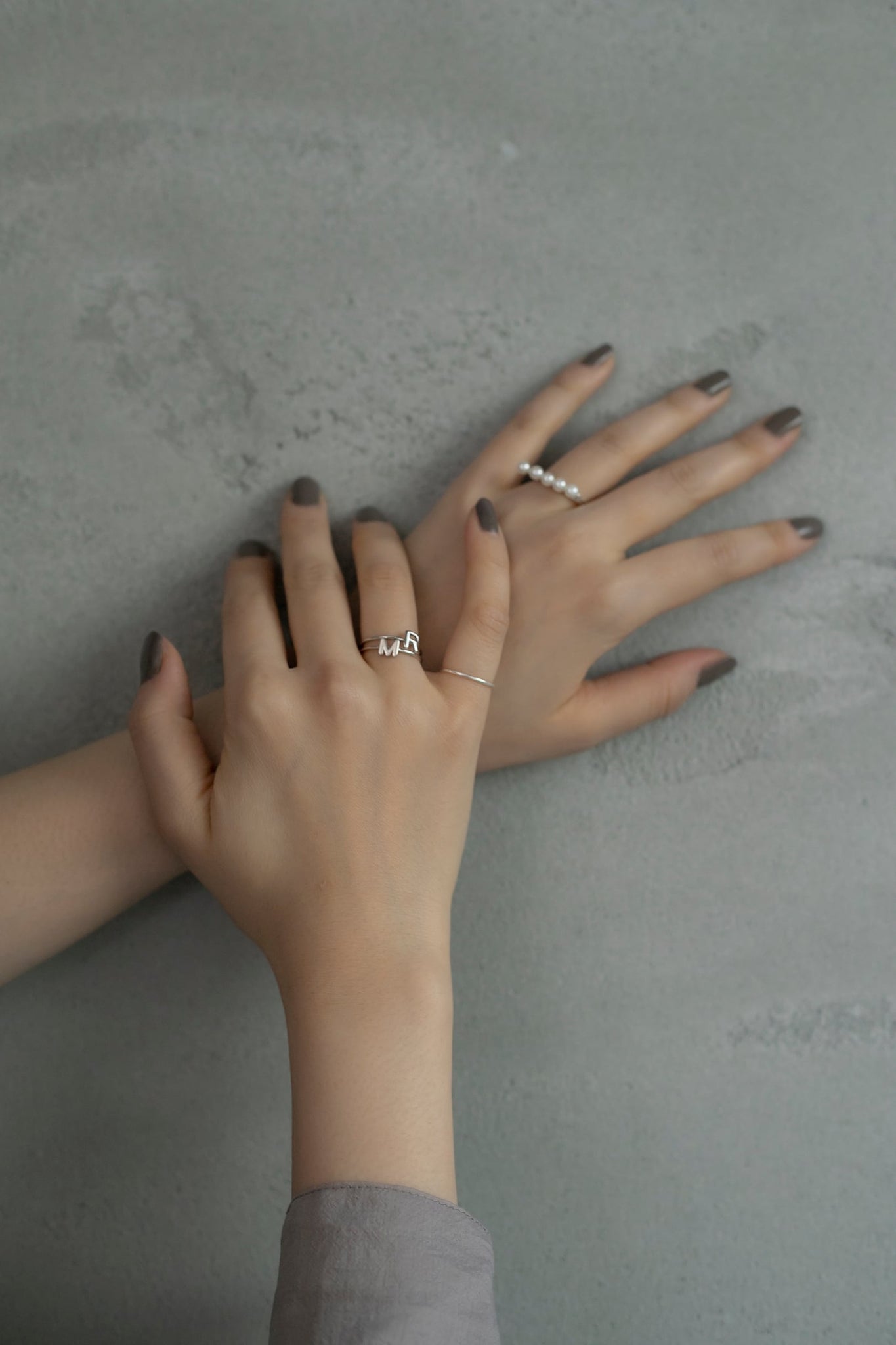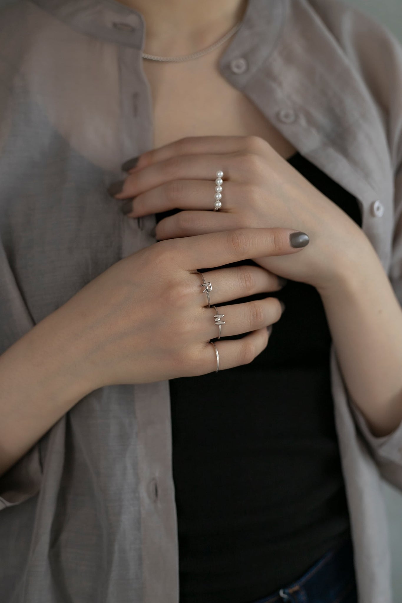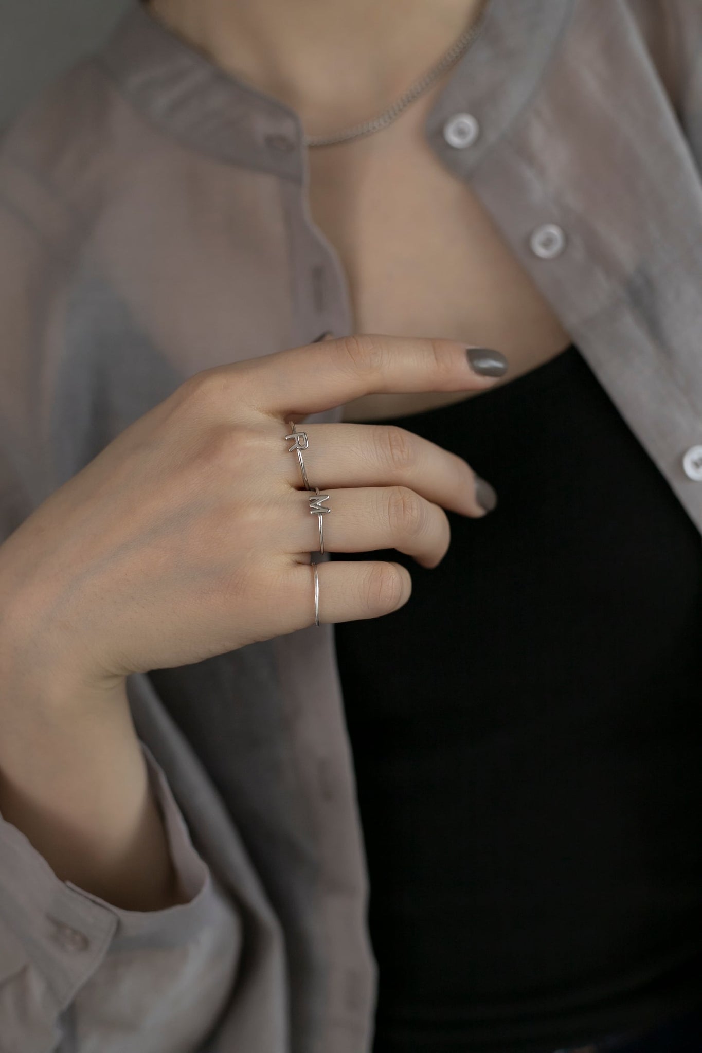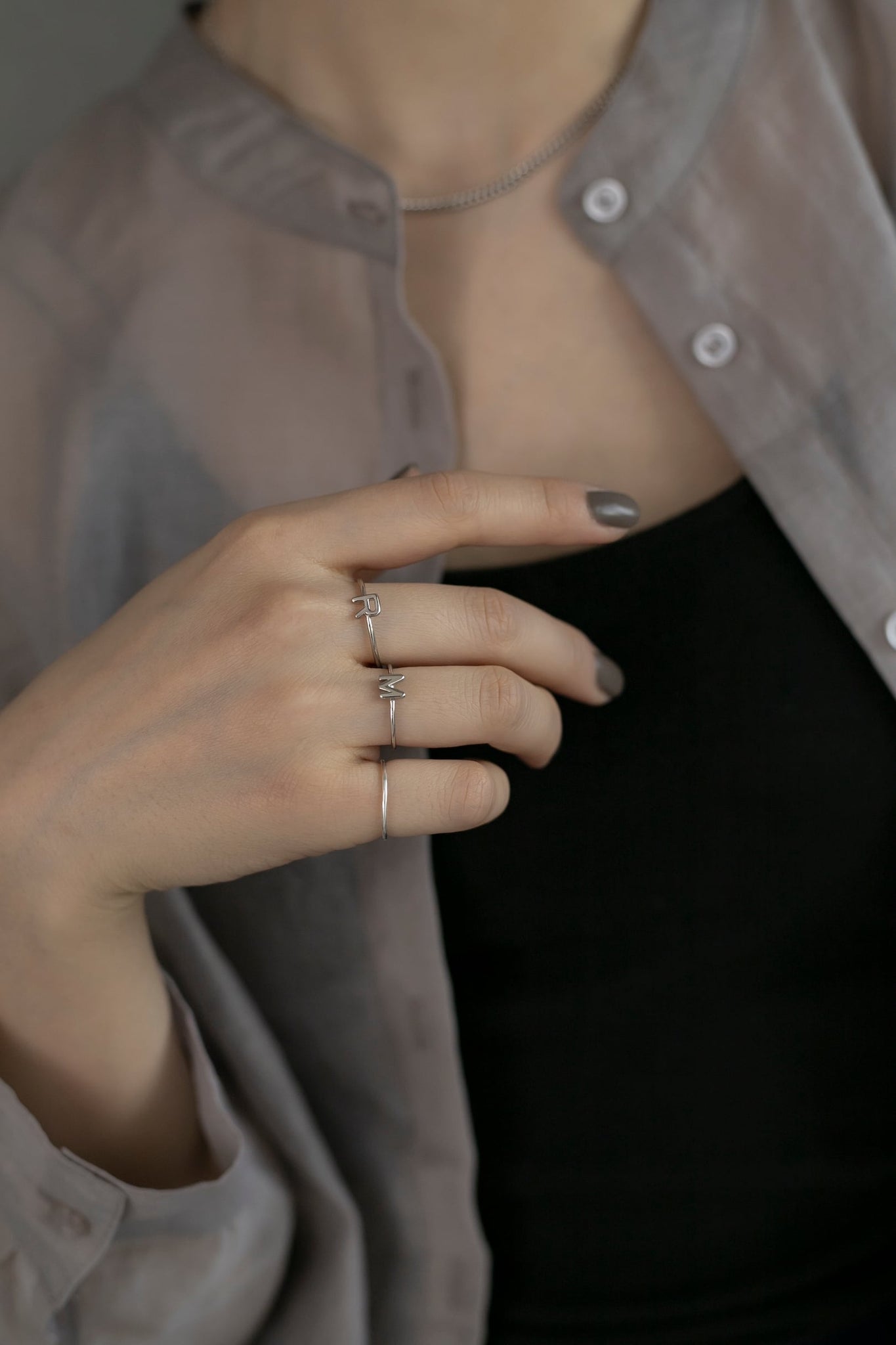 単体ではもちろん、写真のように重ね付けしたり他のリングとミックスしてつけても可愛いイニシャルリングです!