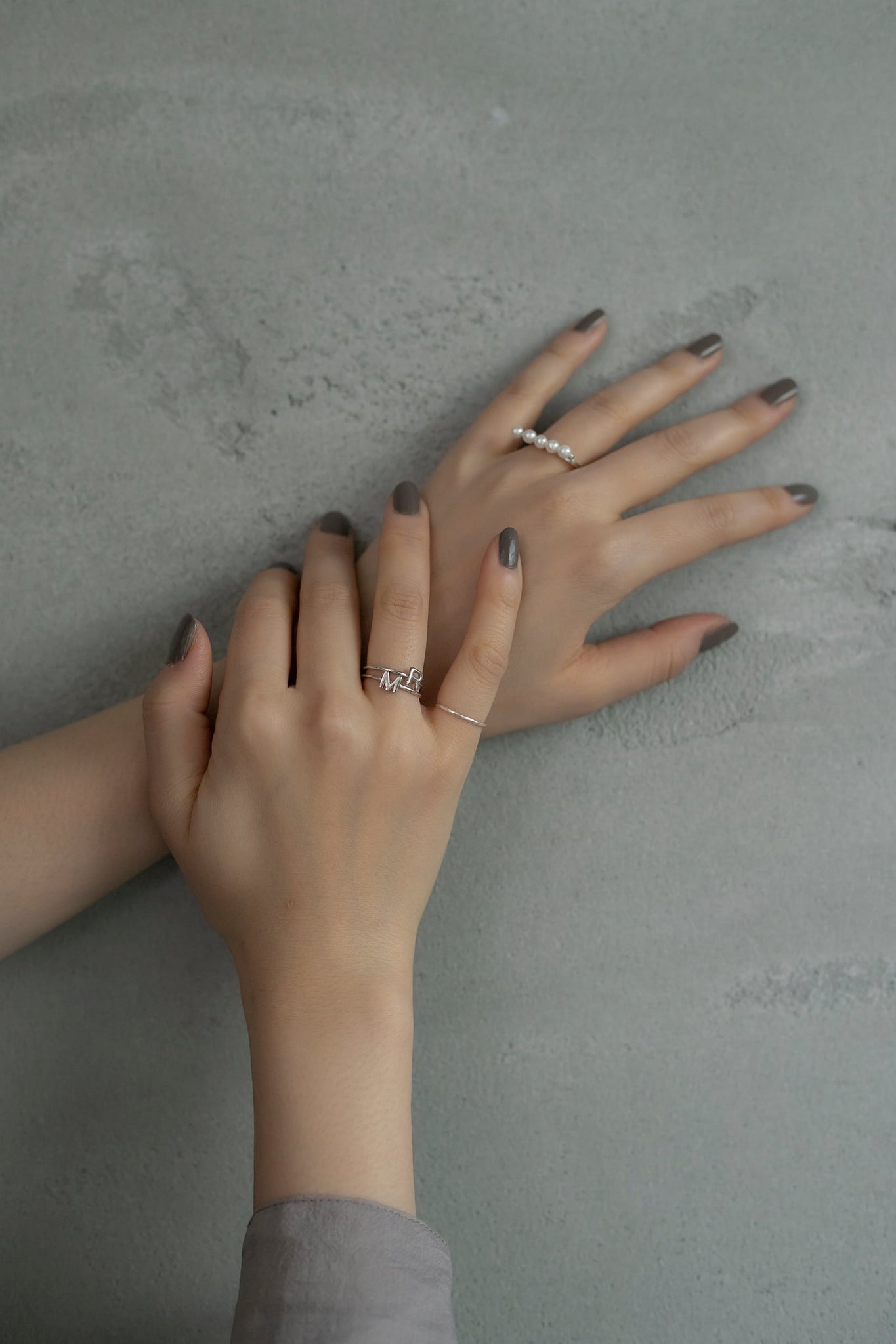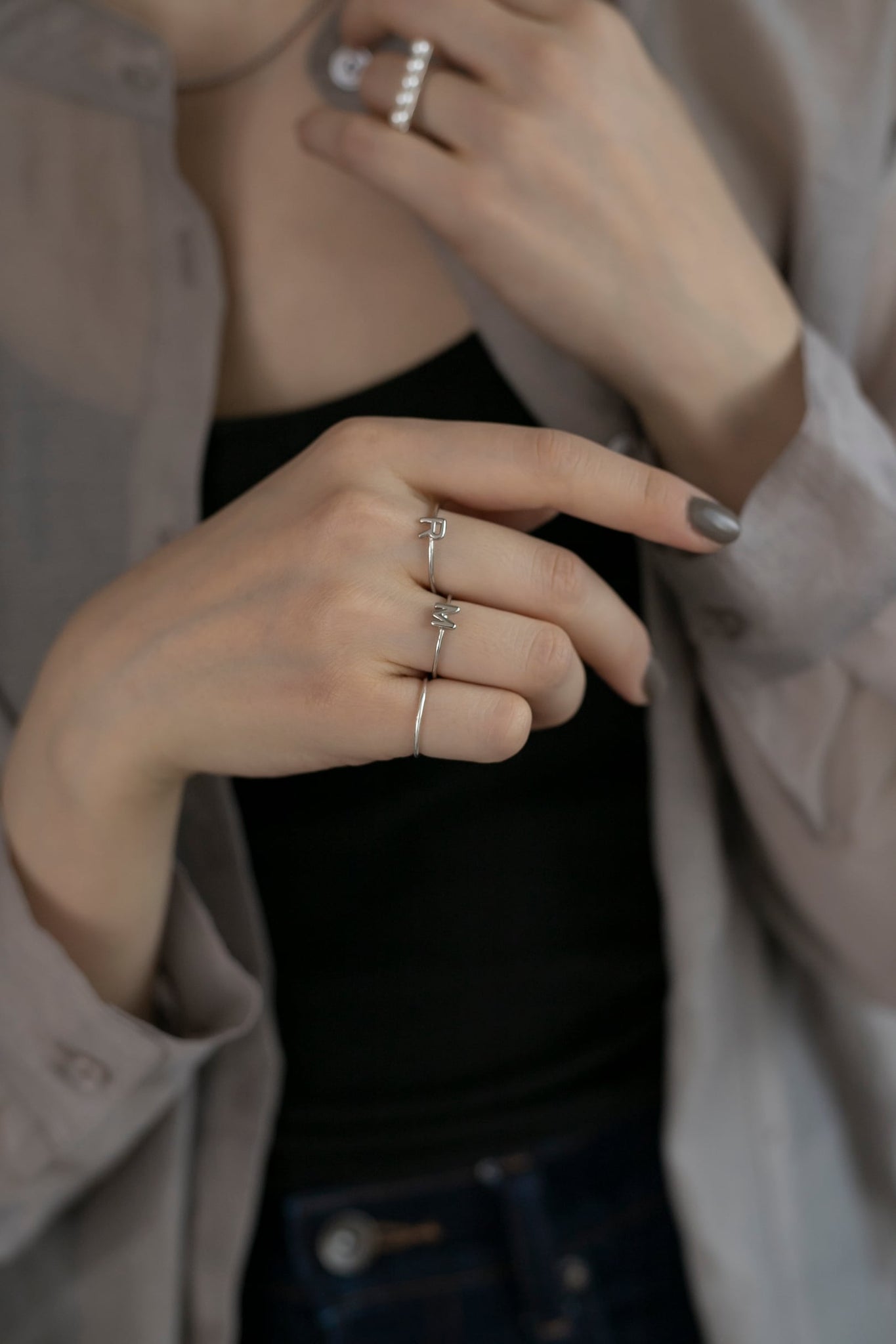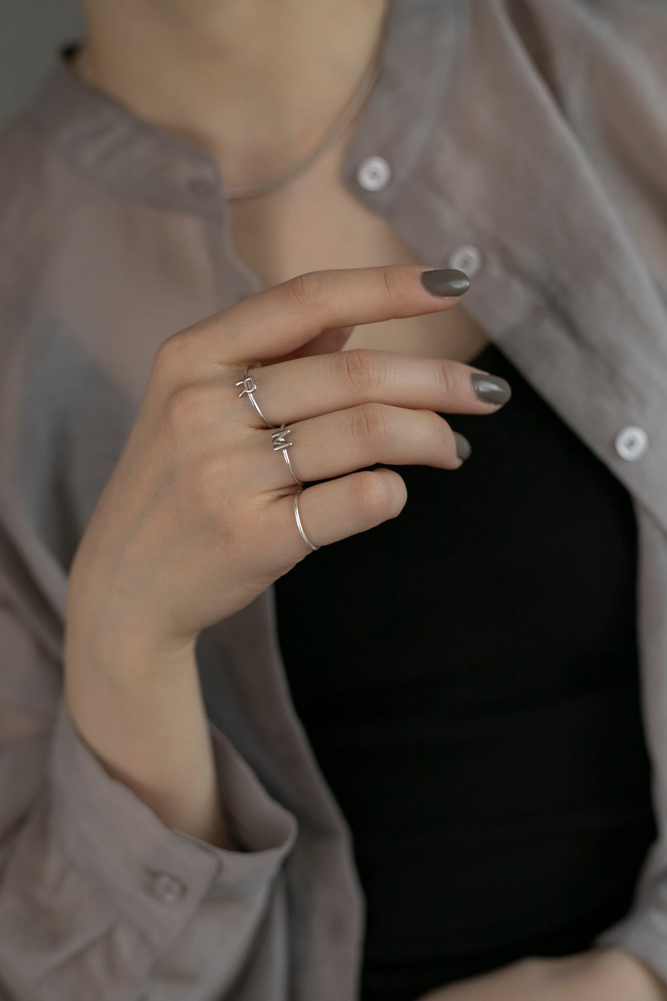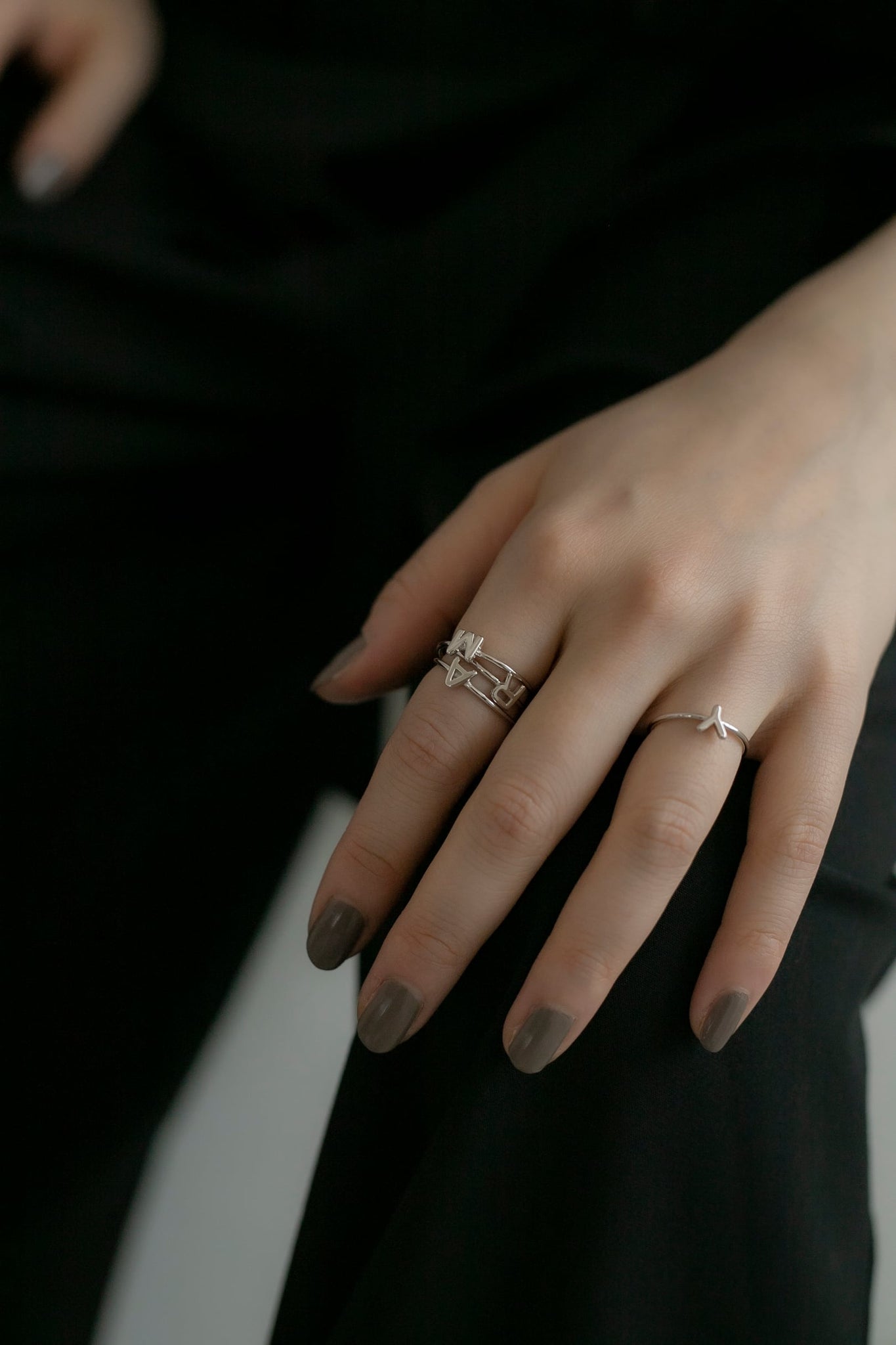 単体ではもちろん、写真のように重ね付けしたり他のリングとミックスしてつけても可愛いイニシャルリングです!