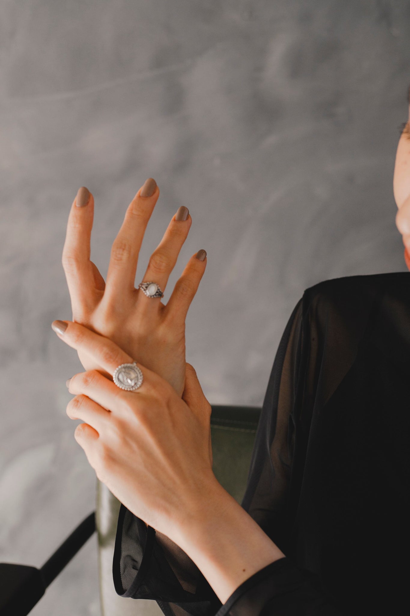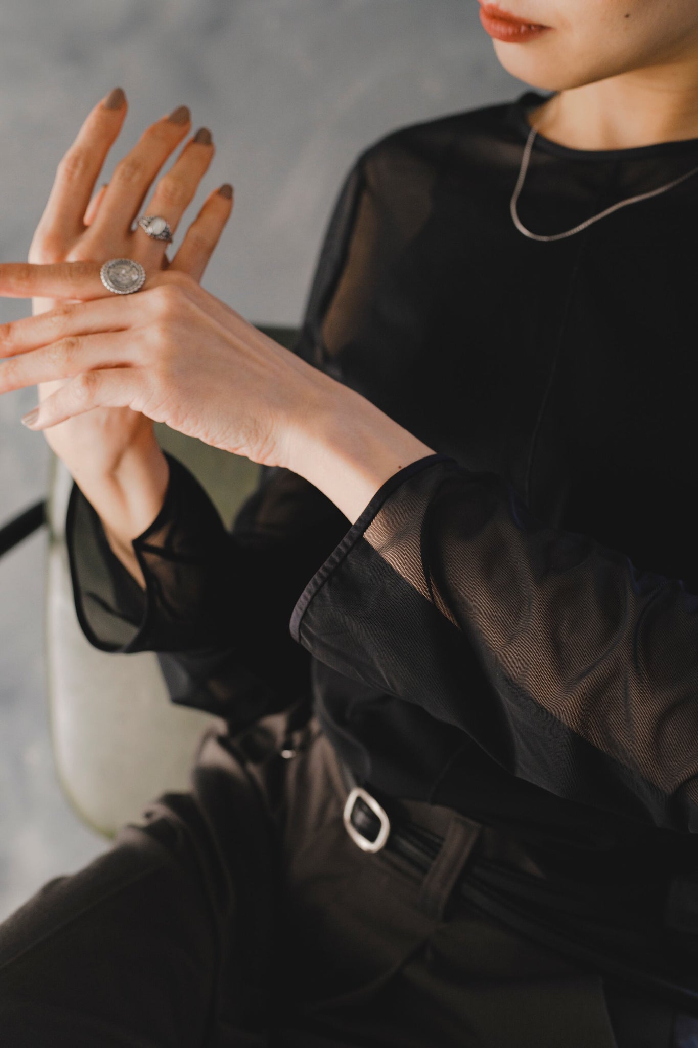 手指に馴染むようさりげなく湾曲しており、単体ではもちろん他のヴィンテージ加工のリングと組み合わせても可愛いです◎