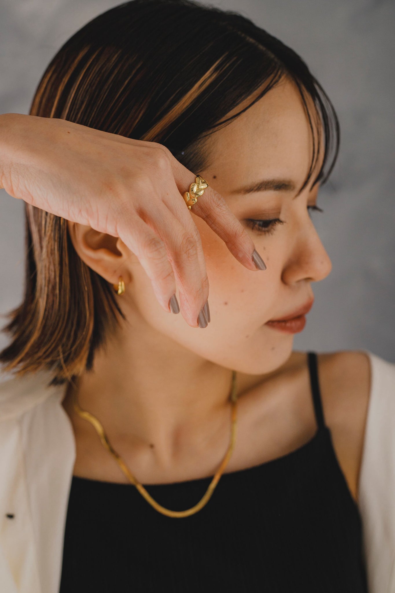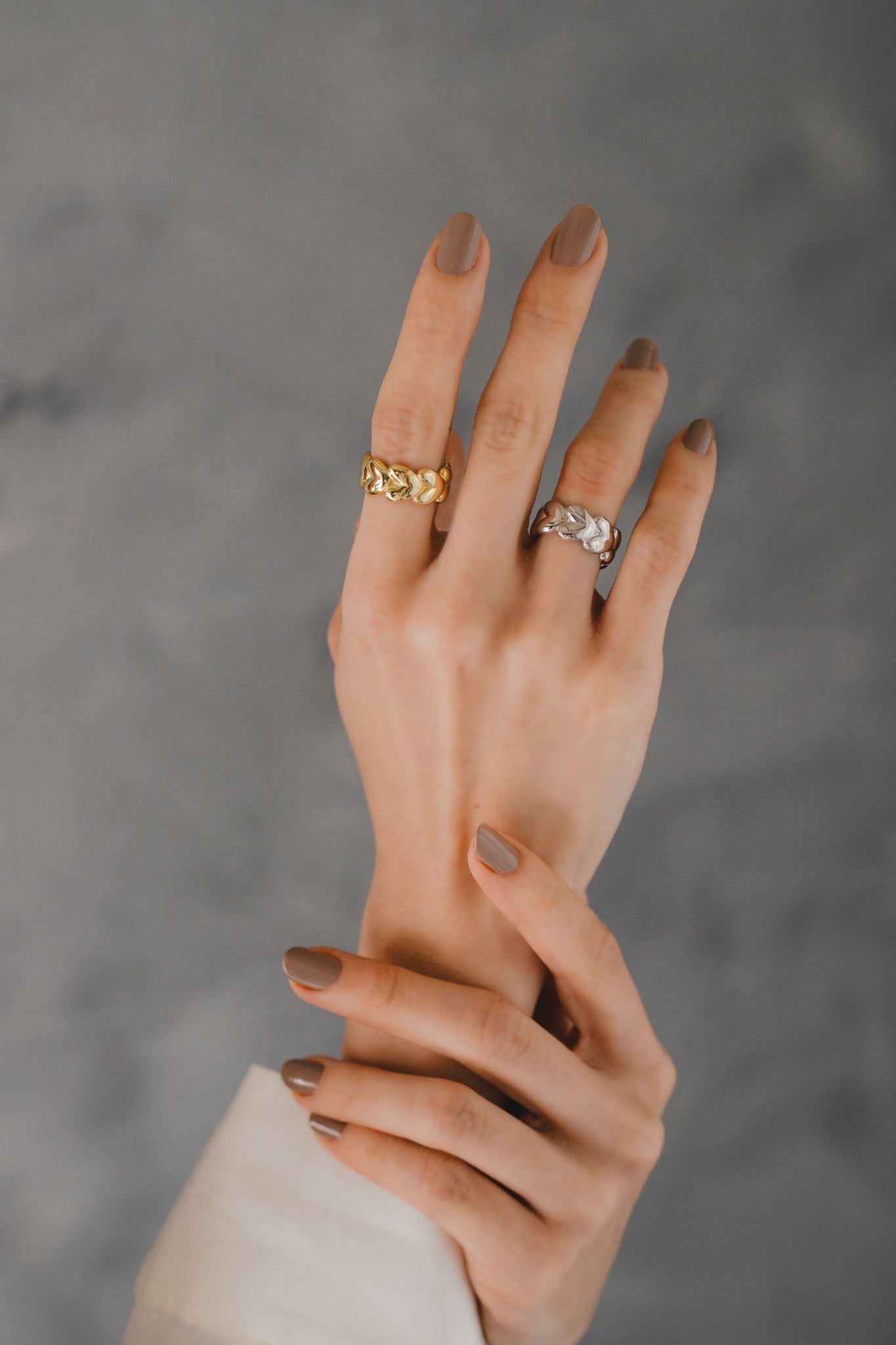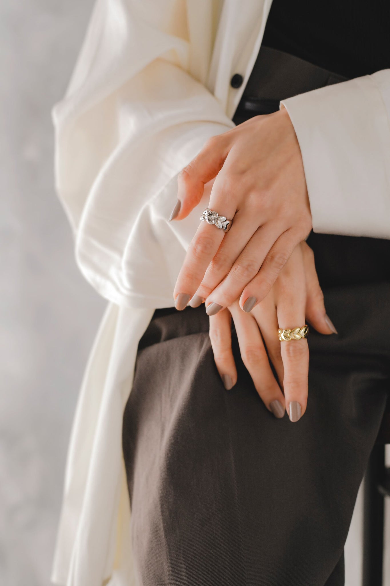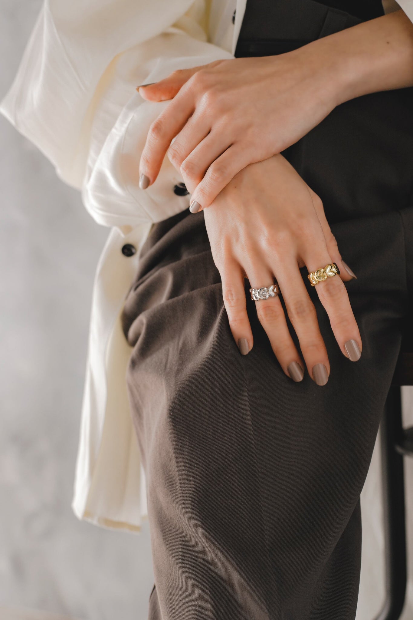 絶妙な立体感が手指になじんで使いやすく、単体ではもちろん他のリングと合わせたり親指につけてもお洒落です◎