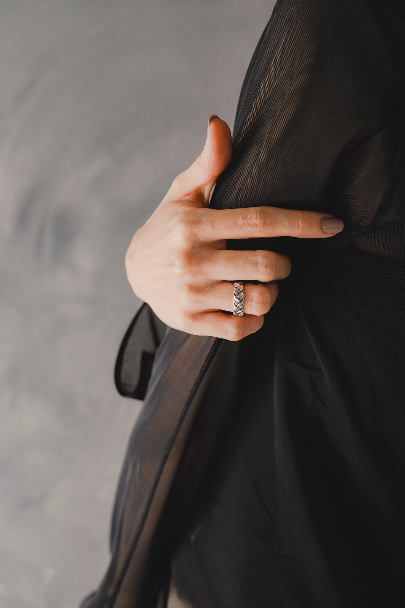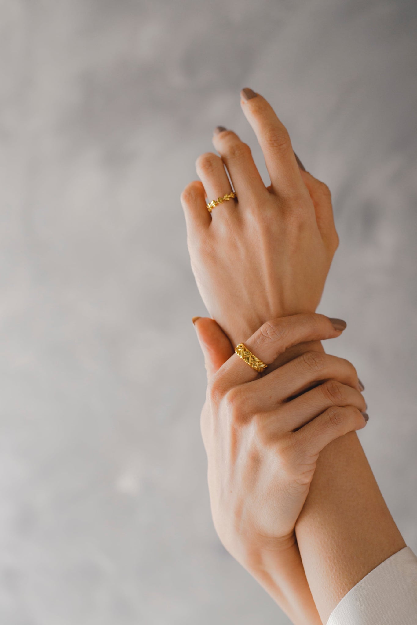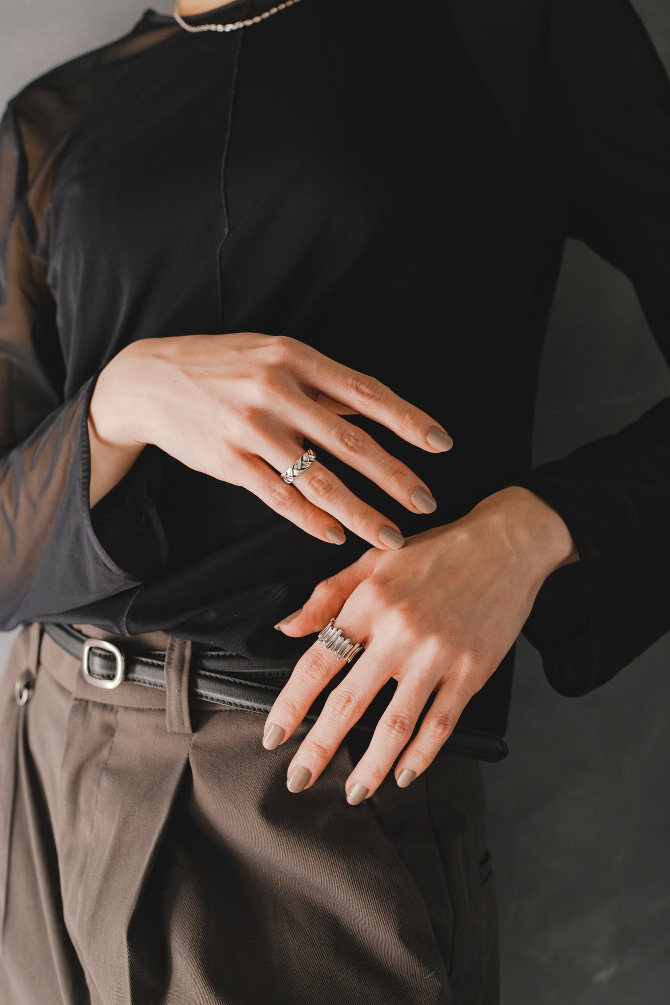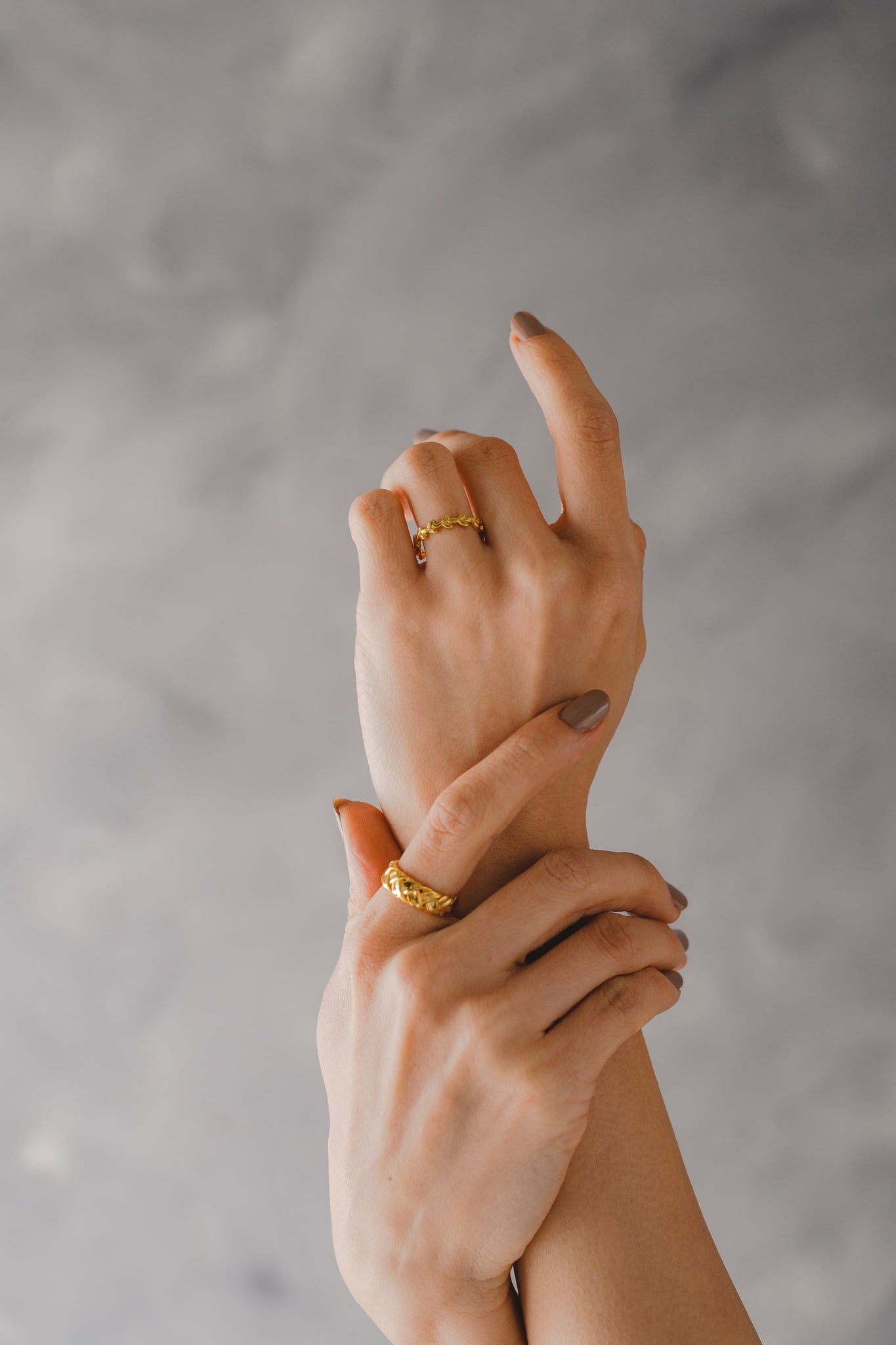 手指になじむ立体的なフォルムが手元に存在感を与えてくれ、親指につけても可愛いです◎