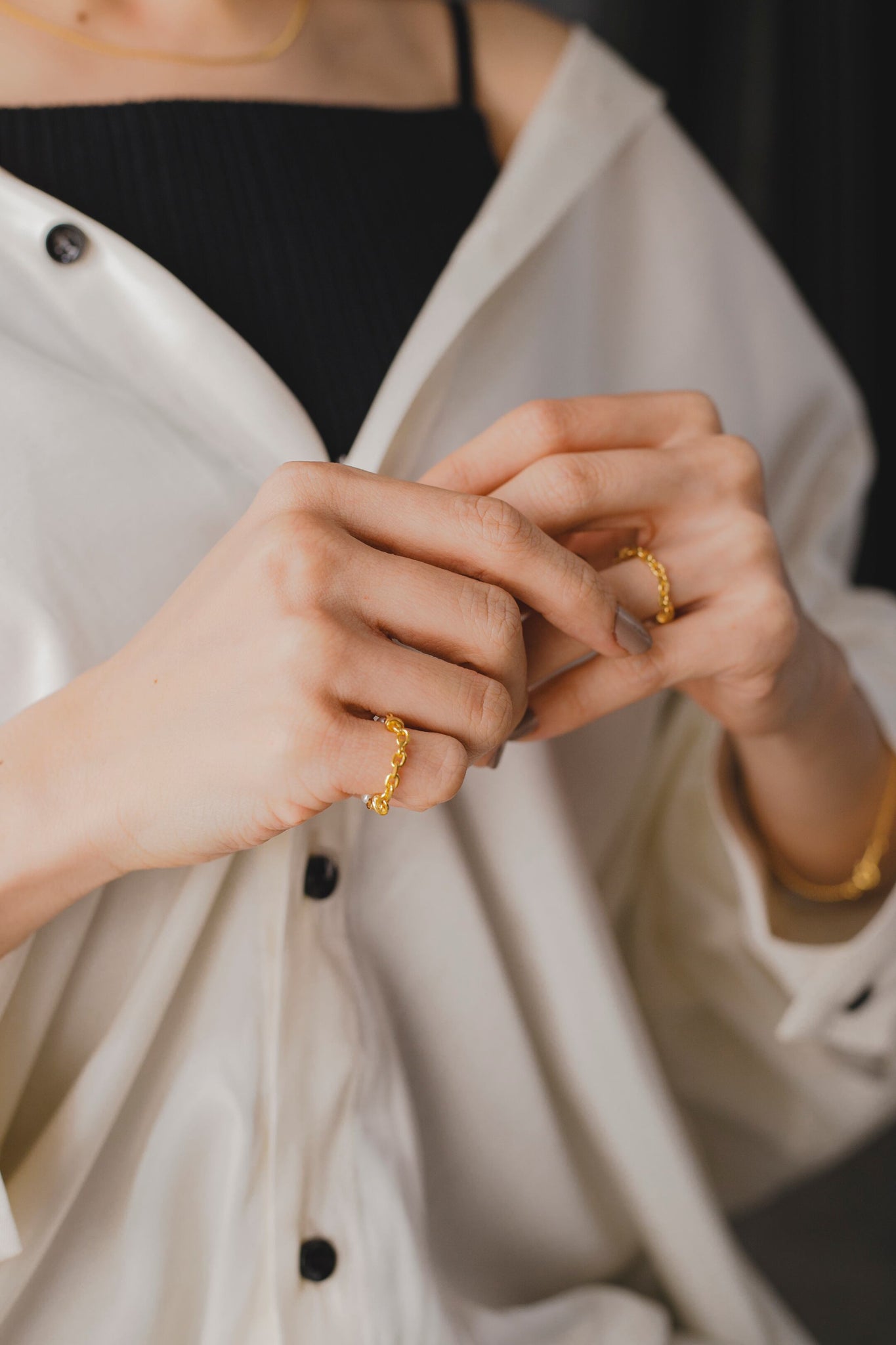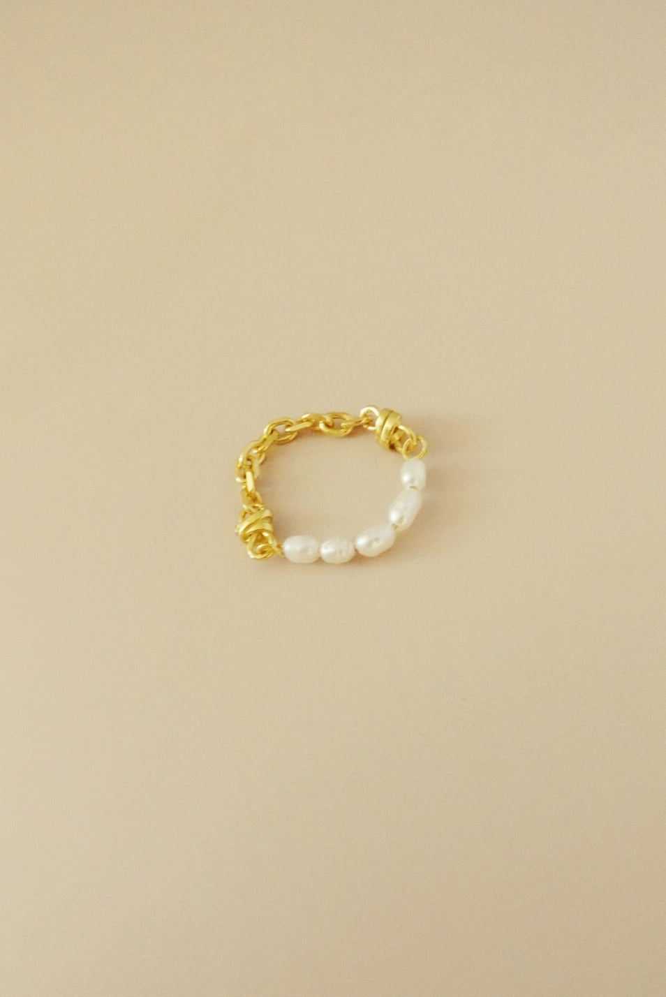 しっかりめのゴールドのチェーンと淡水パールの組み合わせがとても可愛いリングです!