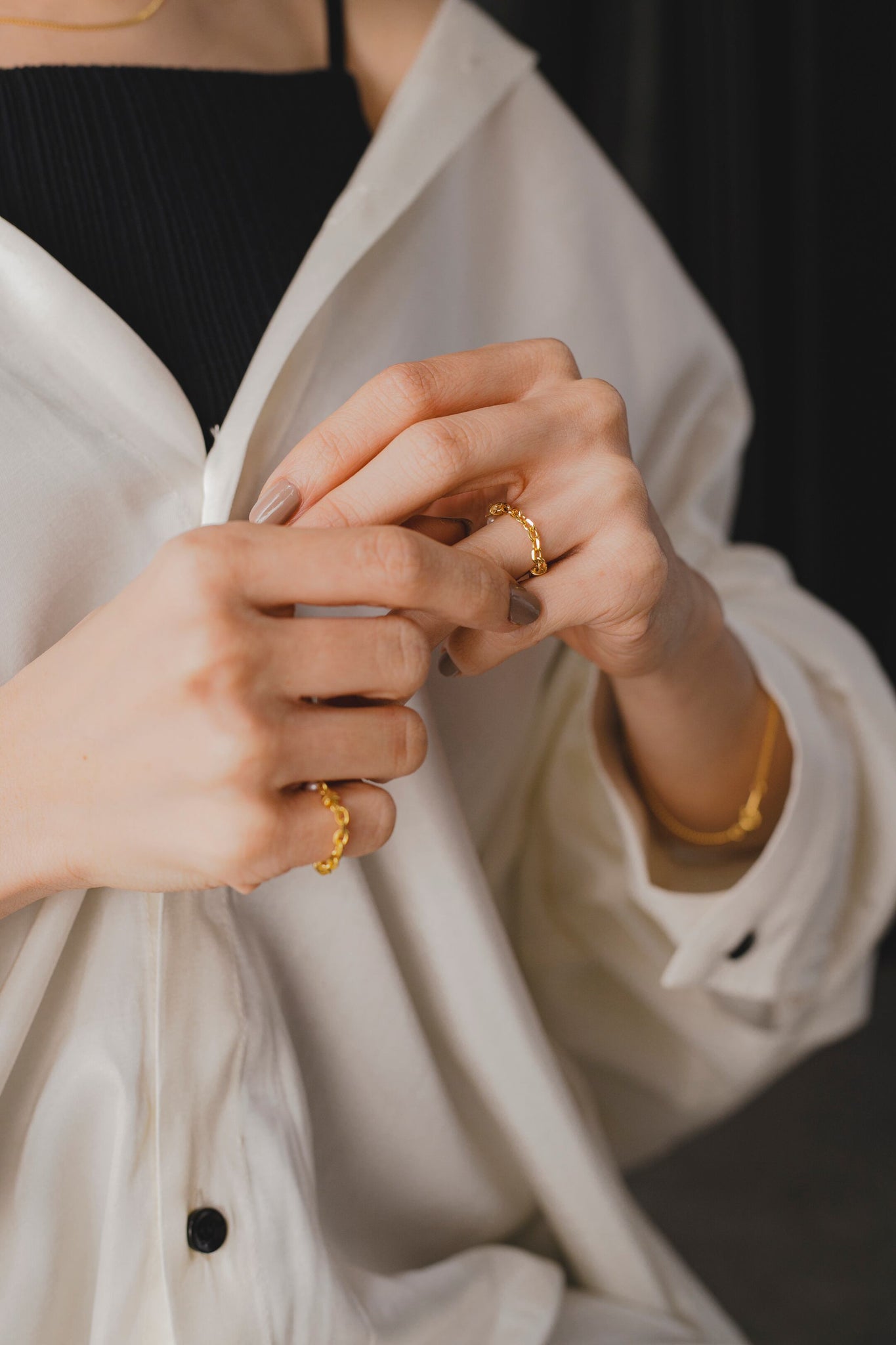どの部分を正面に持ってくるかで印象が変わり、ピンキーリングとしてつけてもお洒落で、デイリーユースからパーティーシーンまで幅広くお使いいただけます◎
