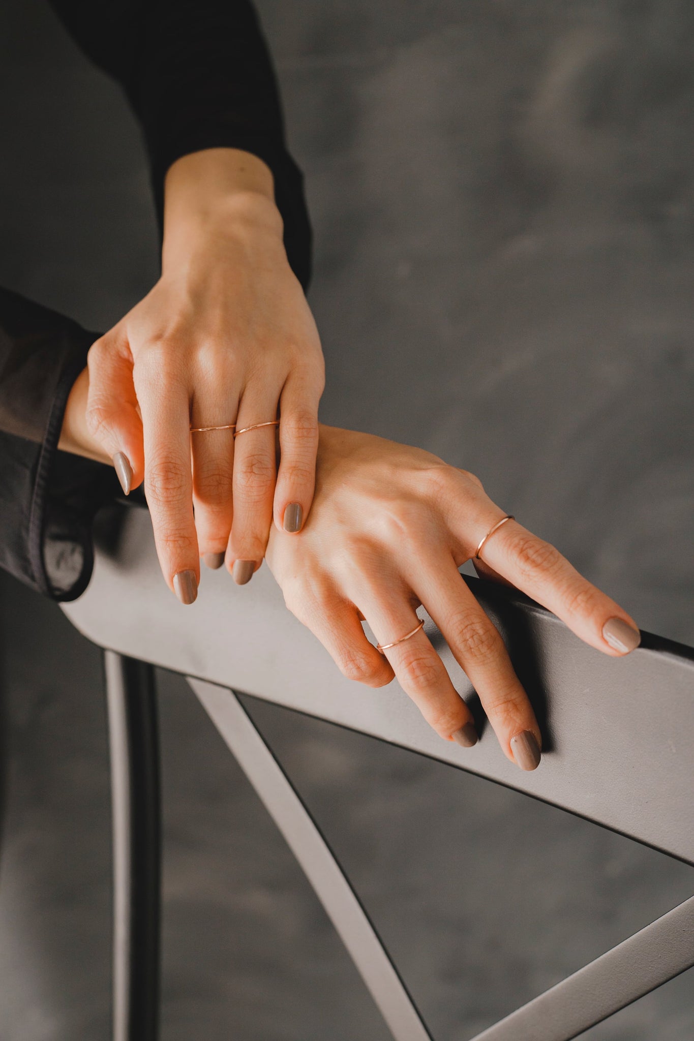 デザイン性の強いリングやボリューム感の異なるリングと合わせるのも凄く可愛いので是非!