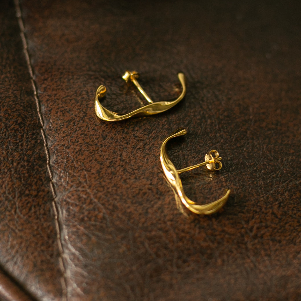 縦型でさりげなくツイストになったデザインがとても可愛く、イヤーカフのようにも見えるピアスです!