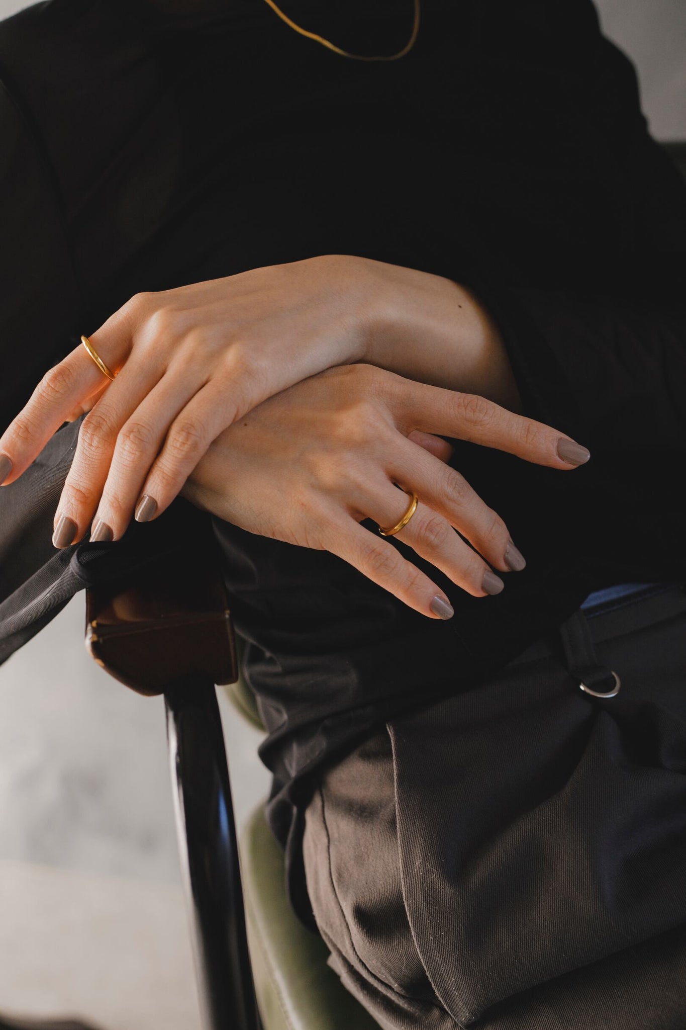 他のゴールドのリングより少しオレンジがかったお色味で、単体ではもちろん、同じリング同士や、色違いのシンプルラージリングと合わせても可愛いです◎