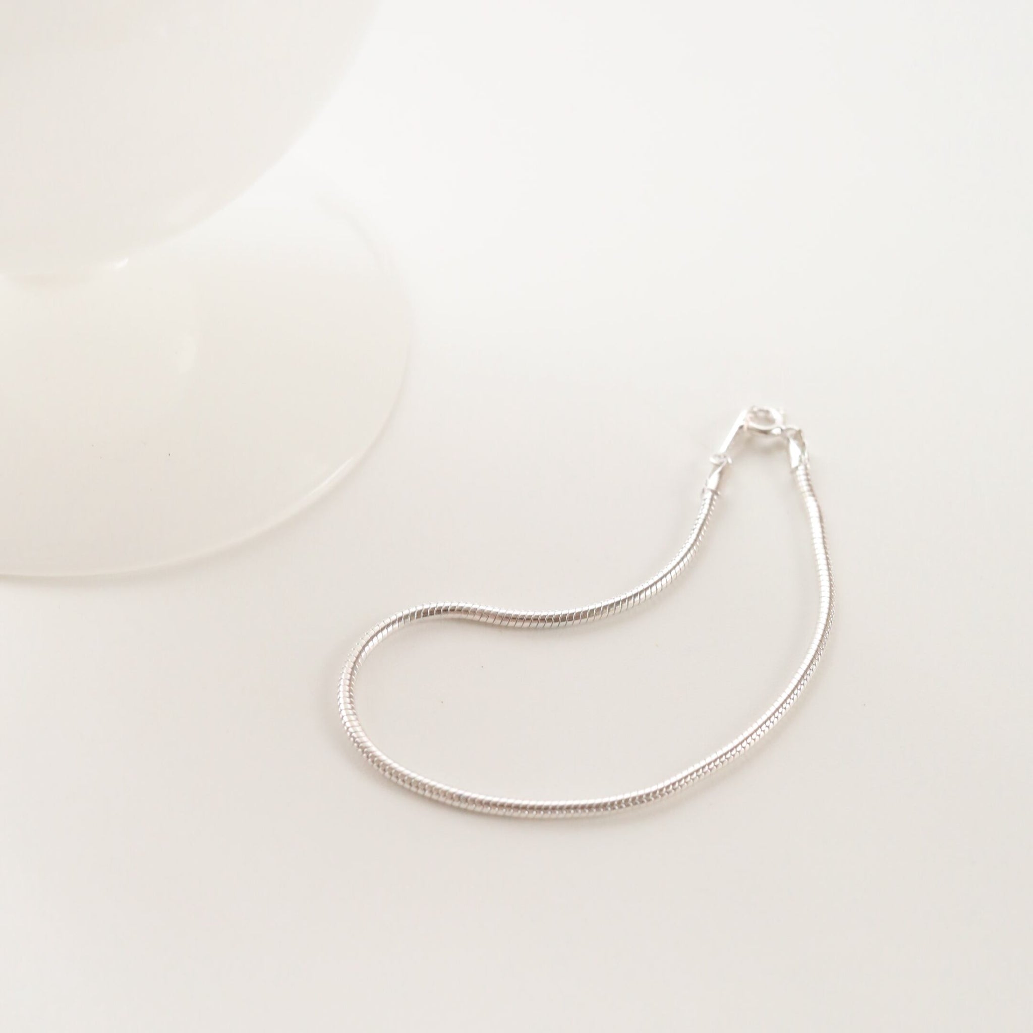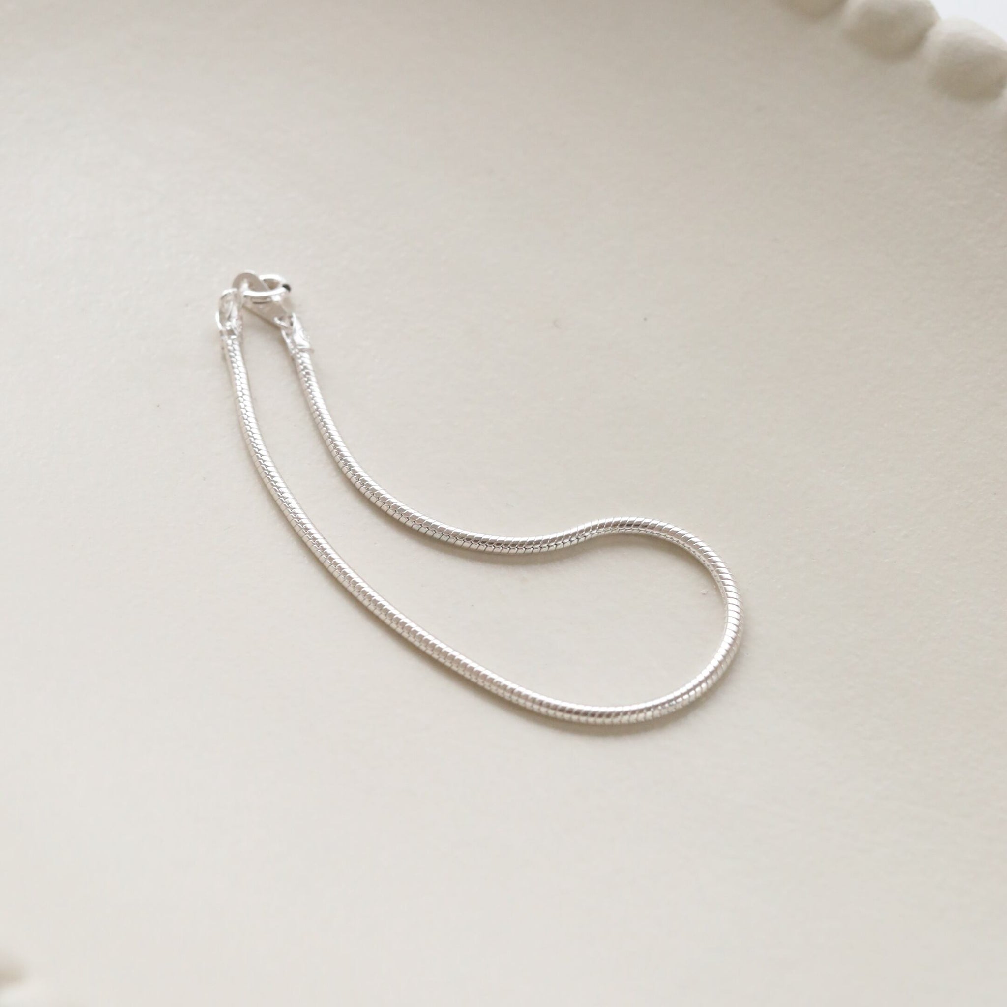 少し太めでしっかりとした作りのスネークチェーンがとても可愛く、白っぽいシルバーのお色味が手元のアクセントにぴったりのブレスレットです!