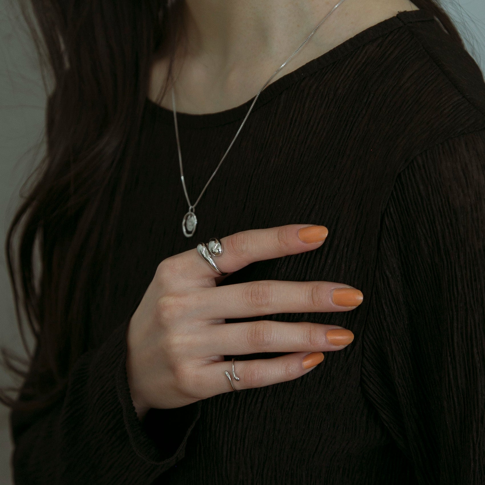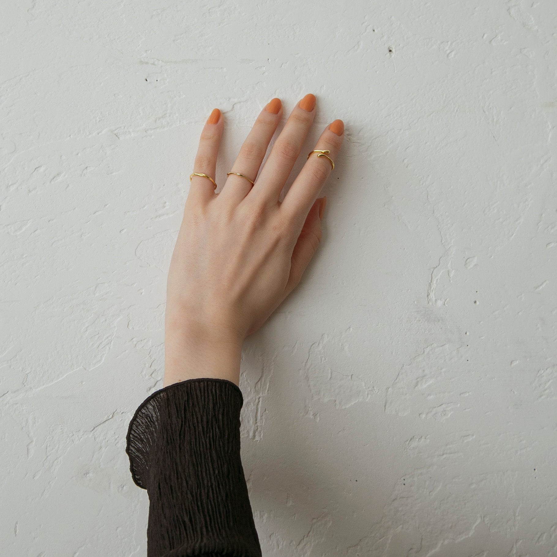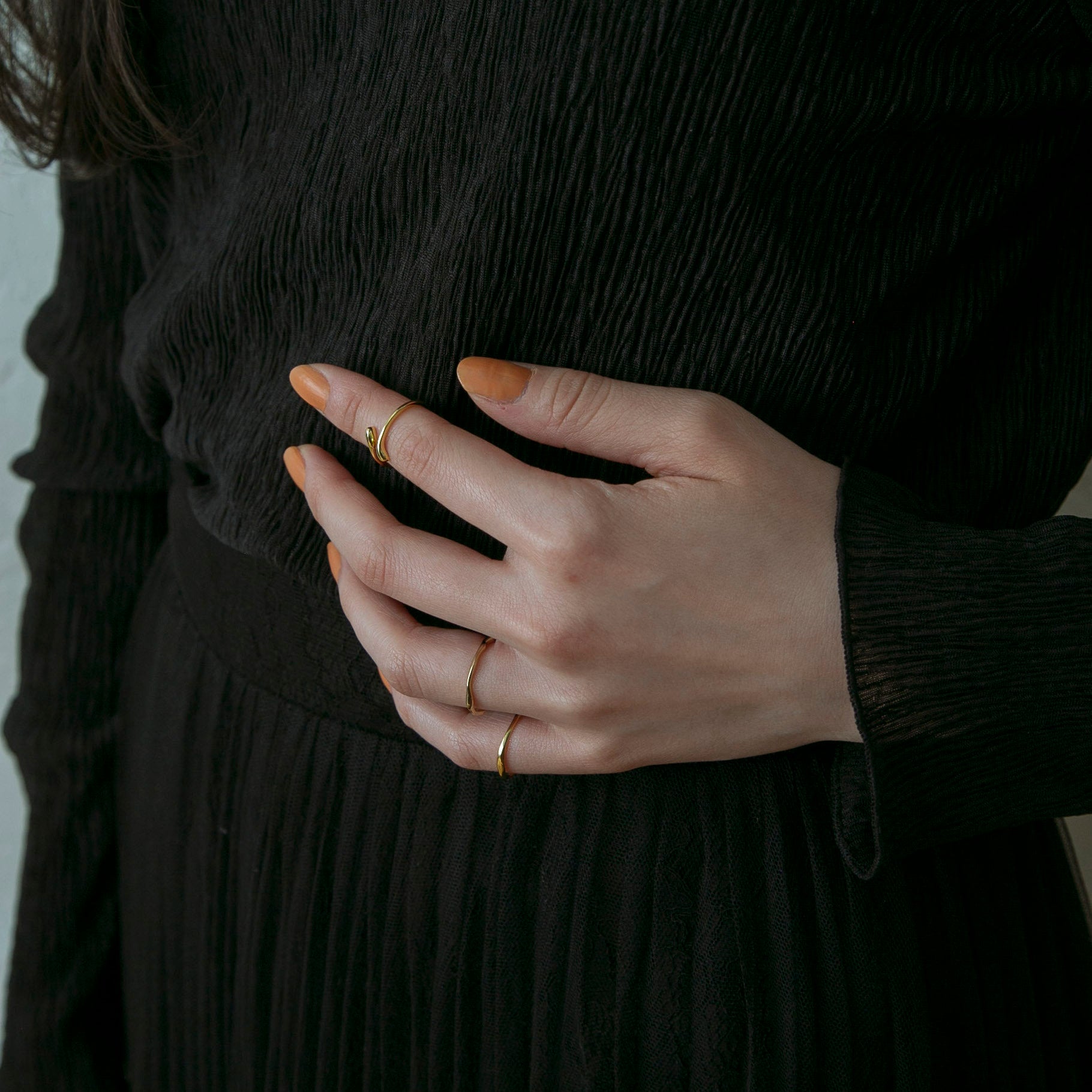 同じボリューム感のリングと合わせたり関節や小指につけてもお洒落で、繊細な手元を演出してくれます◎