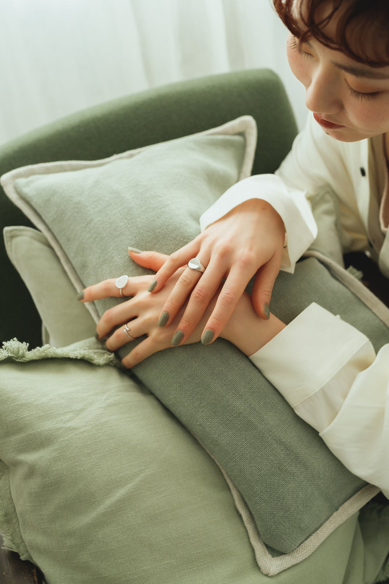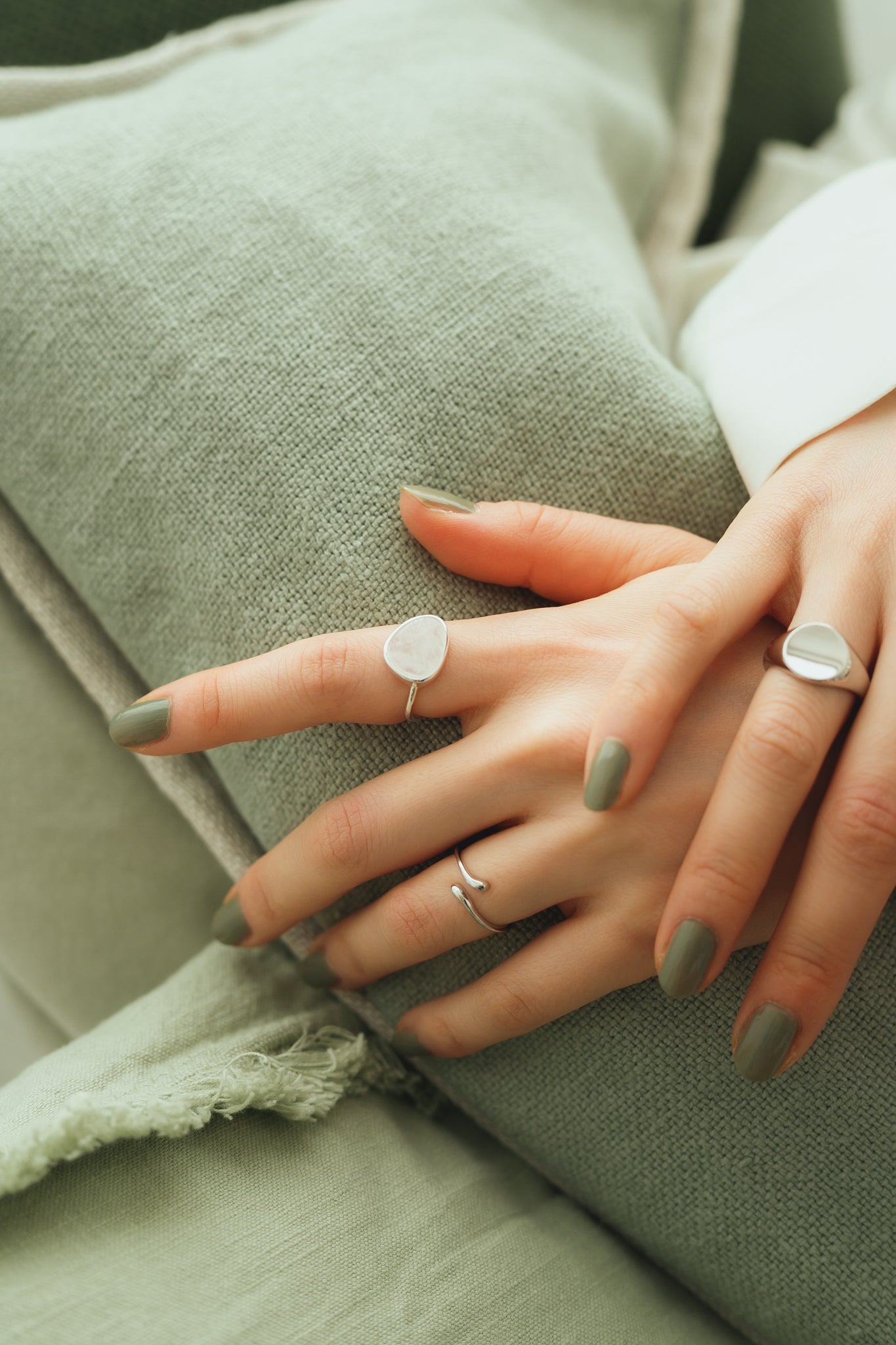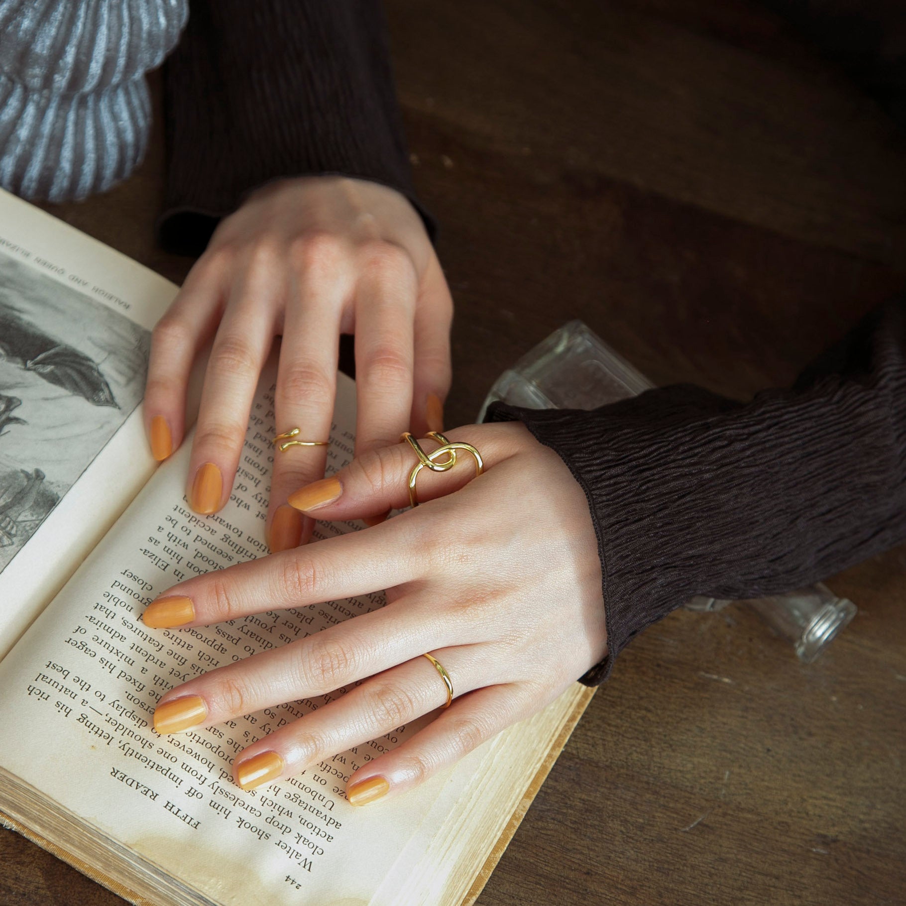 同じボリューム感のリングと合わせたり関節や小指につけてもお洒落で、繊細な手元を演出してくれます◎