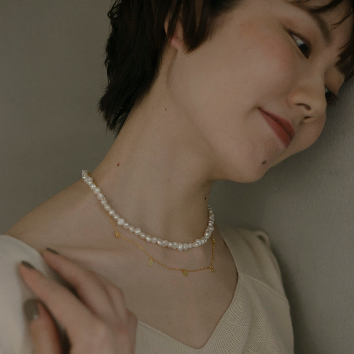 トレンドで大きさが不揃いの淡水パールがとても可愛く使いやすいチョーカーです!