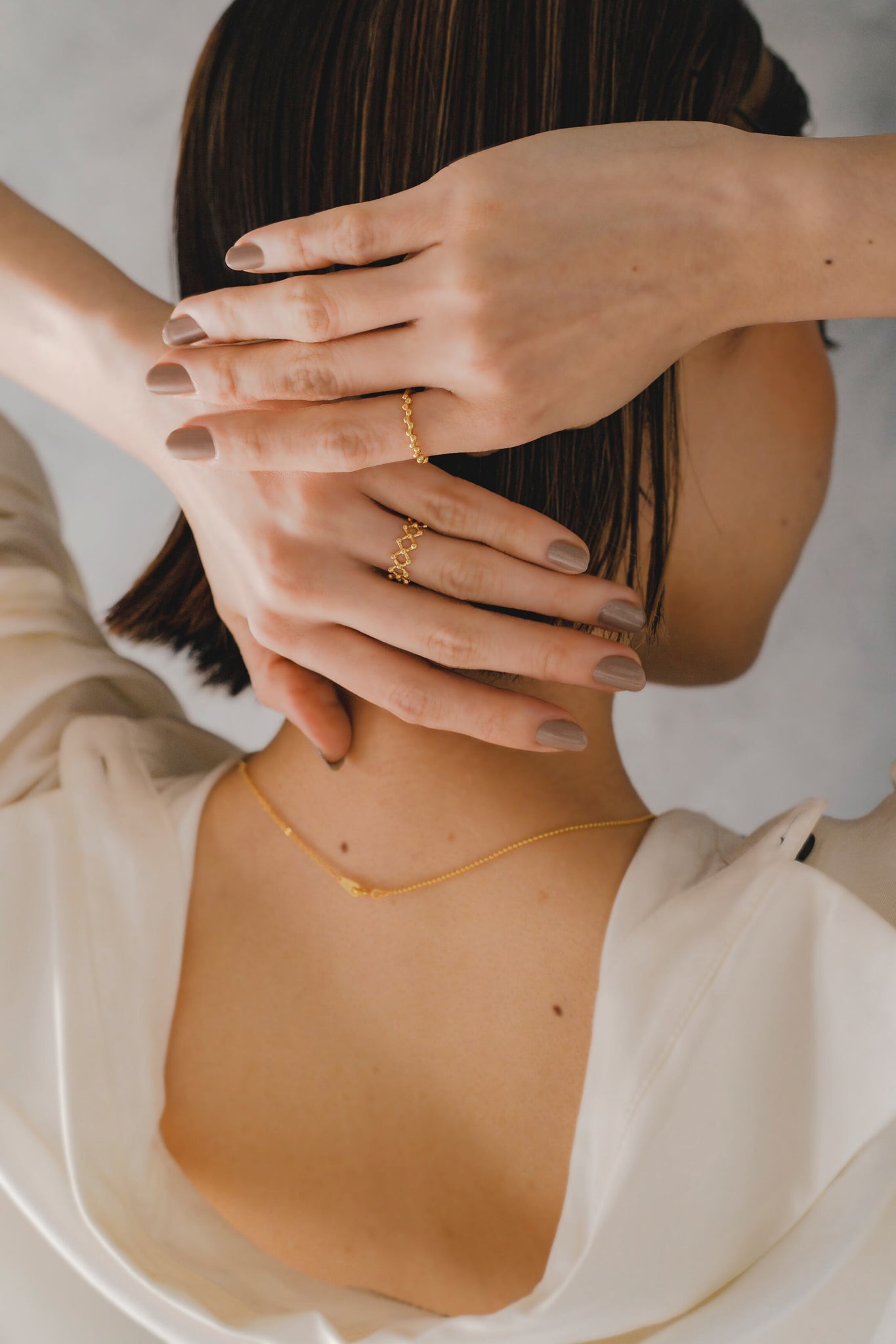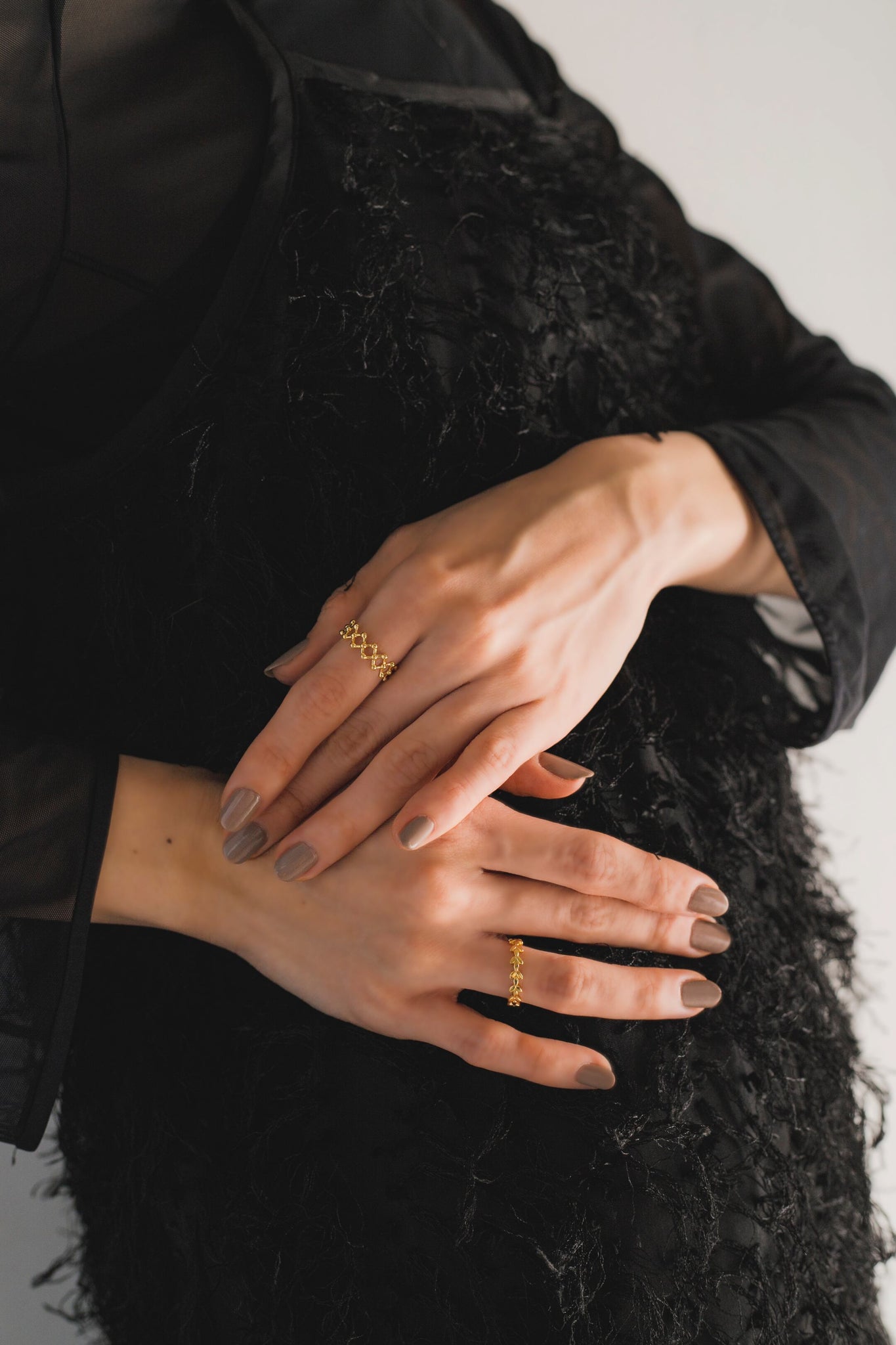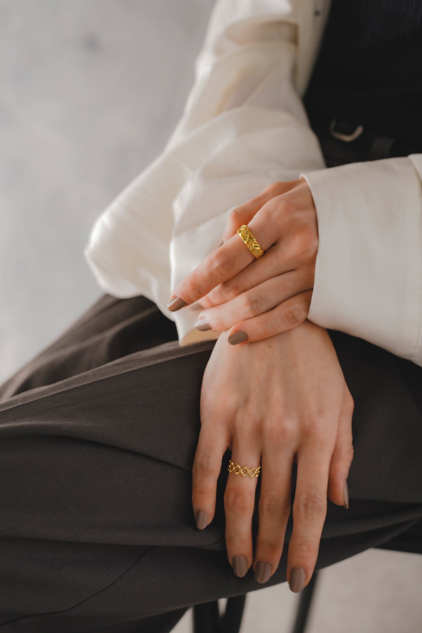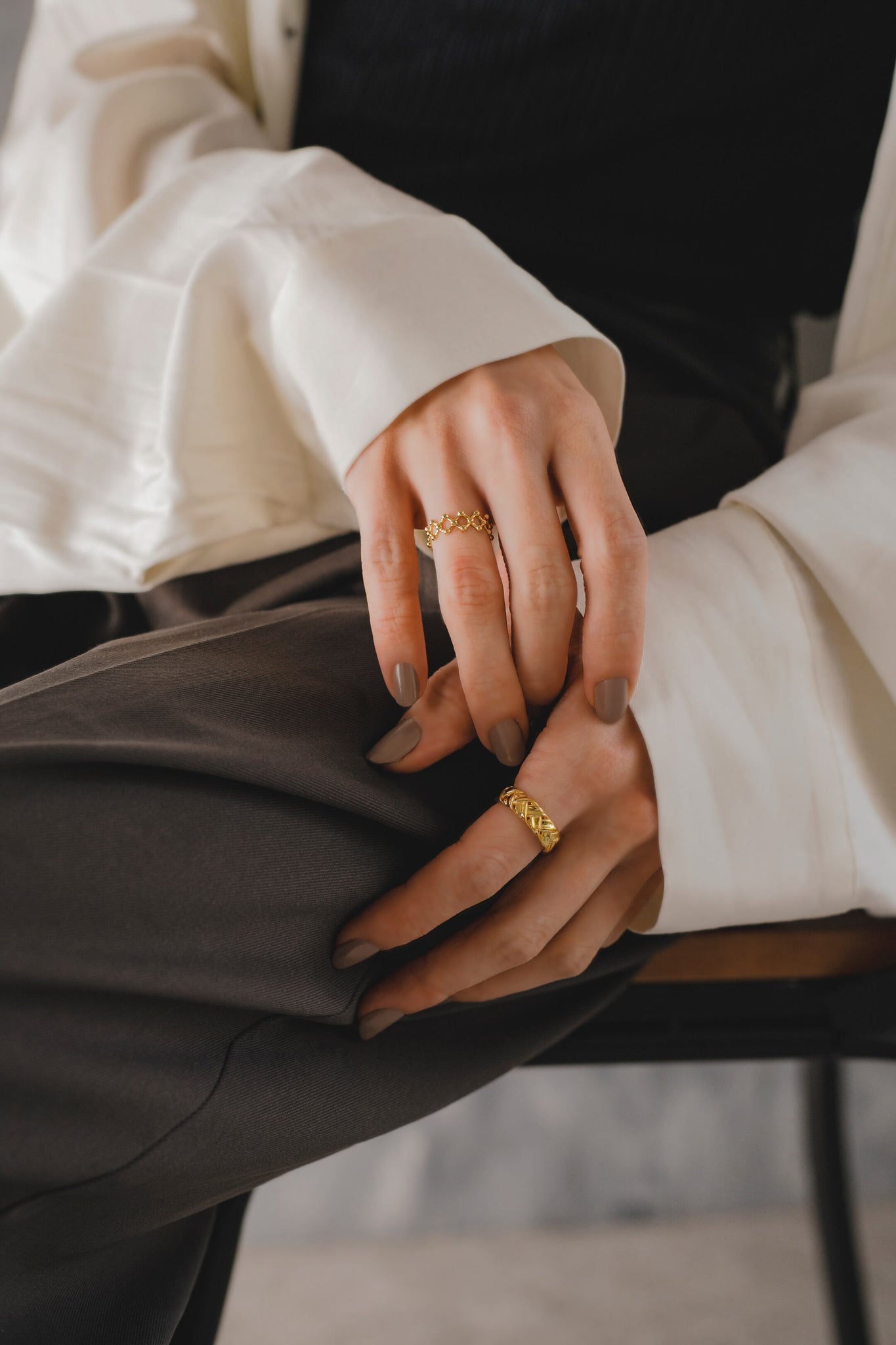 しっかり抜け感があるので手指がすっきり見え、落ち着いた雰囲気にもカジュアルにも合わせて使えます◎