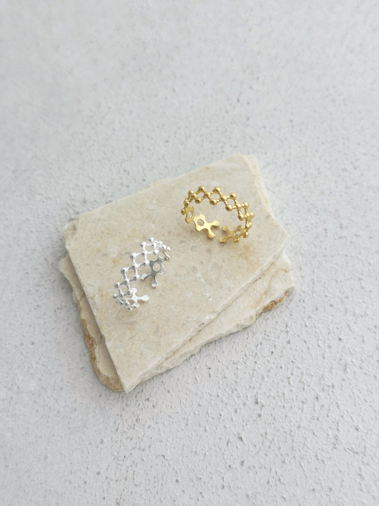 レース編みのような繊細なデザインがとても可愛いリングになります!